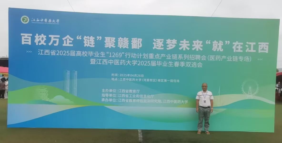 2025年4月26日,江西省2025届高校毕业生“1269”行动计划重点产业链系列招聘会(医药产业链专场)在江西中医药大学湾里校区火热举行。海南医科大学中医学院党委副书记李军、学院副处级辅导员孙学文赴现场开展“访企拓岗促就业”专项行动,与参会企业、地方政府部门深入对接,为毕业生高质量就业开辟新路径,助力中医药产业链人才供给予产业需求精准匹配。