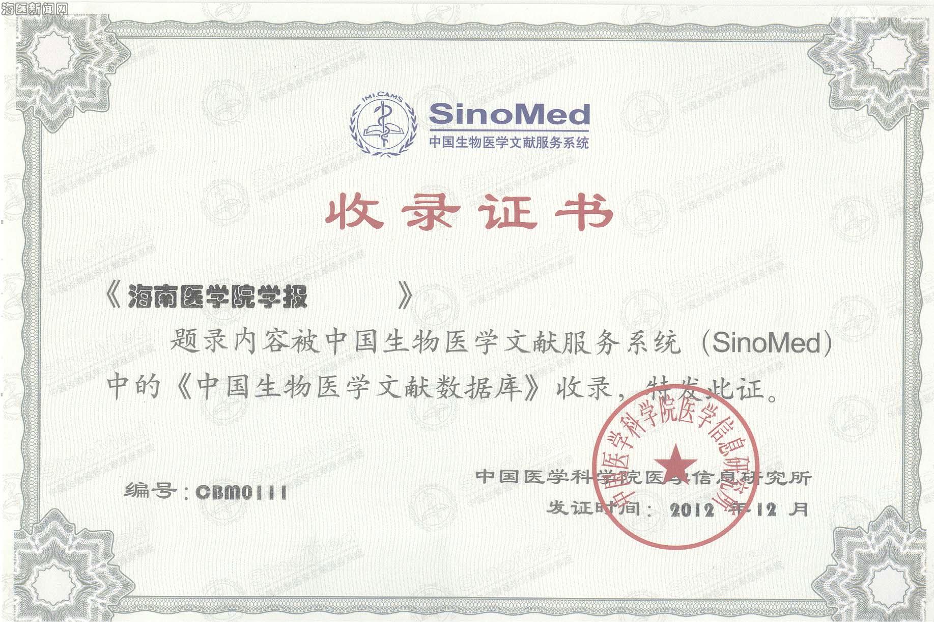 近悉,《海南医学院学报》(以下简称《学报》)被中国生物医学文献服务系统(SinoMed)中的《中国生物医学文献数据库》收录。这表明《学报》得到了广大科研工作者和检索机构的认可和肯定,地位得到进一步的提高,提升了学校的对外影响力。