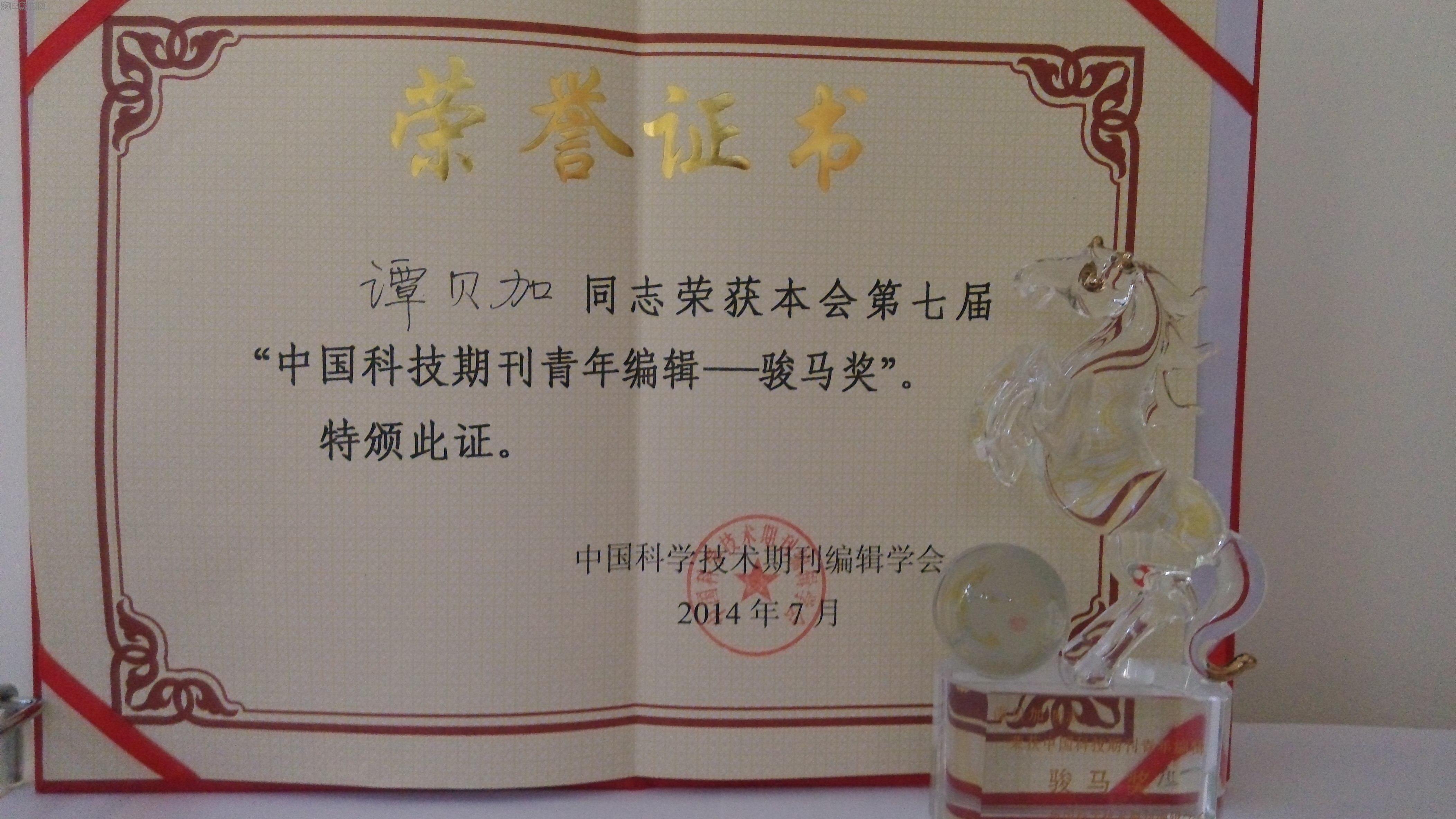 届“中国科技期刊青年编辑奖—骏马奖”。