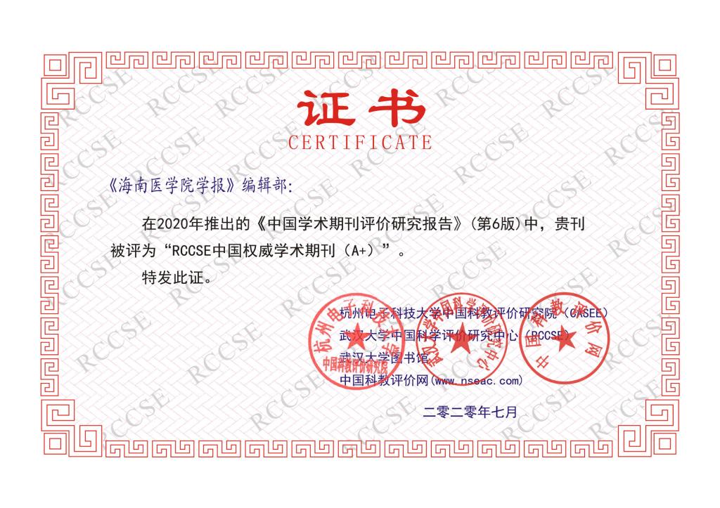 近日,RCCSE《中国学术期刊评价研究报告》(第6版)评价结果正式发布,《海南医学院学报》被中国科学评价研究中心评为“中国权威学术期刊(A+)”。《报告》中公布的全国医学综合类220种期刊中,有11种入选A+,《海南医学院学报》排名第5位,较2017年提升了5个位次(http://qk.nseac.com/phb/2020/4160.html)。