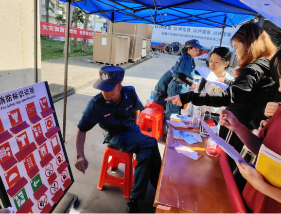 11月12日,保卫处联合党委宣传部、学工处,在畅学苑(三、四期)公寓门口举办了消防安全知识宣传有奖问答活动。活动设有知识问答、隐患查找、器材讲解、标识识别等多个互动体验环节,吸引了约200名学生踊跃参与。同学们在轻松活泼的氛围中积极竞答、实操体验,进一步深化了对关键消防知识与应急技能的理解掌握,活动取得了寓教于乐的良好效果。