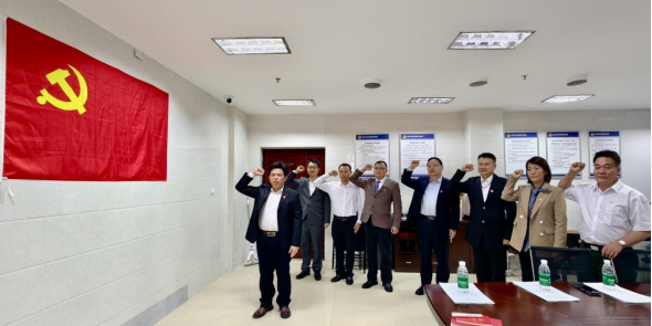 铮铮誓言,初心如磐。 活动伊始,在支部书记王基鸿的领誓下,全体党员面向鲜红党旗,庄严举起右拳,重温入党誓词。“我志愿加入中国共产党……”铿锵有力的誓言,字字千钧,深切表达了全体党员对党的无限忠诚和为党的事业奋斗终身的坚定信念。这一环节强化了党员的身份意识与责任担当,为整个活动奠定了庄严而炽热的基调。