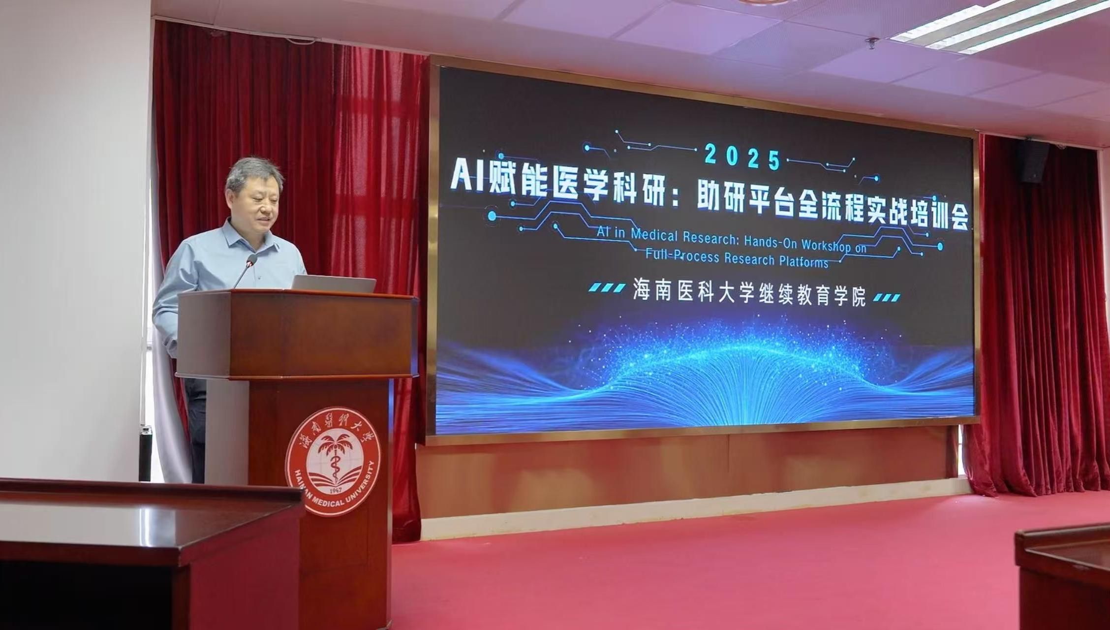 为推动AI技术与医疗卫生科研深度融合,培育“懂医疗、会AI”的复合型科研人才,12月6日上午,由海南医科大学继续教育学院举办的“AI助力医疗卫生科研大会”在图书馆7楼学术报告厅正式开班。本次培训班以“AI赋能医学科研”为主题,汇聚了临床一线医务工作者、医学专业本硕博学子及行业专家,为医疗科研工作者搭建起优质的学习与交流平台。