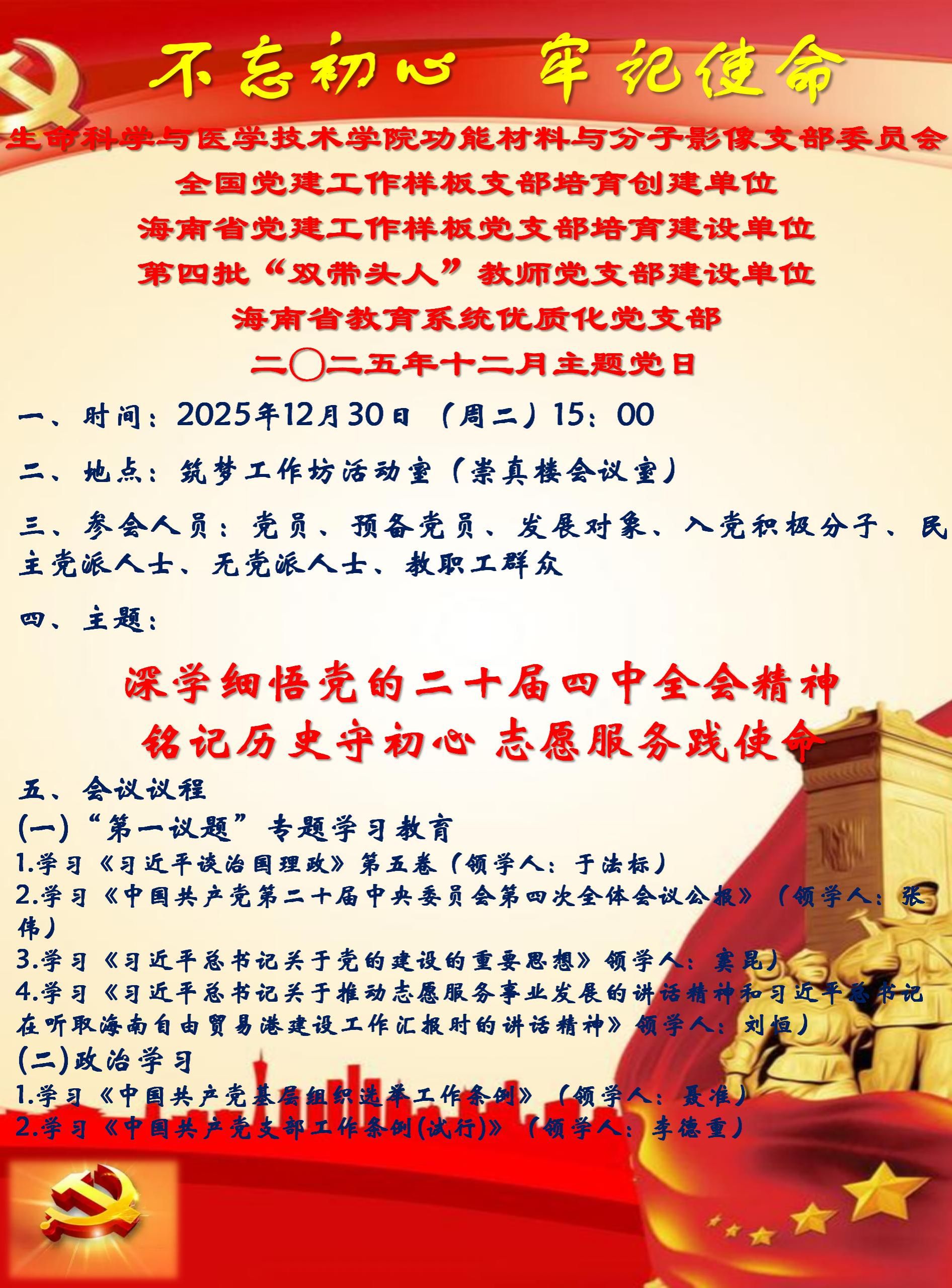 二〇二五年十二月主题党日 深学细悟党的二十届四中全会精神,铭记历史守初心志愿服务践使命