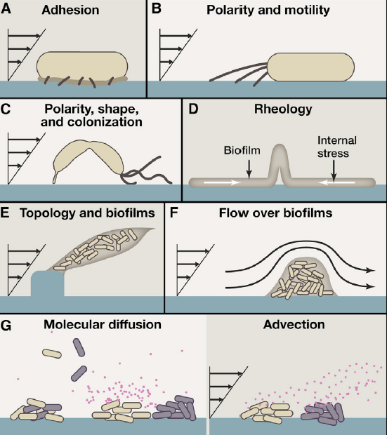 细菌面对表面时,常常发生一种行为转变——从自由游动转变为表面黏附状态,进而进入生物被膜(biofilm)的建立阶段。这一过程被称为附着转化(surface sensing),其背后有明确的力学驱动机制。