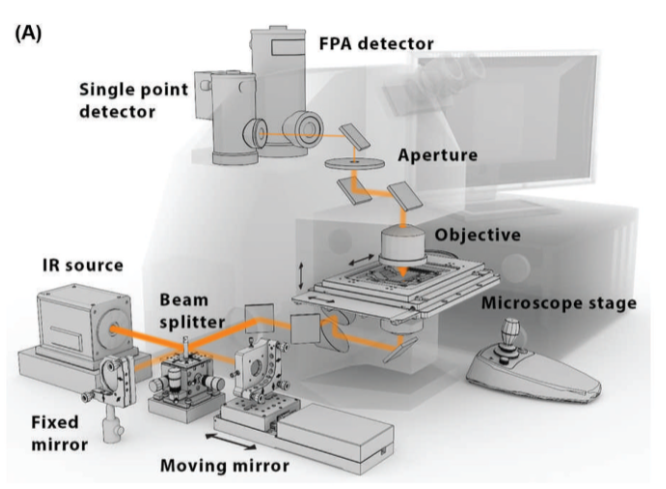 红外光谱使用的是宽频光源(如氙灯、红外灯等),样品透过或反射后,通过干涉仪和探测器分析光的吸收程度。(图6)