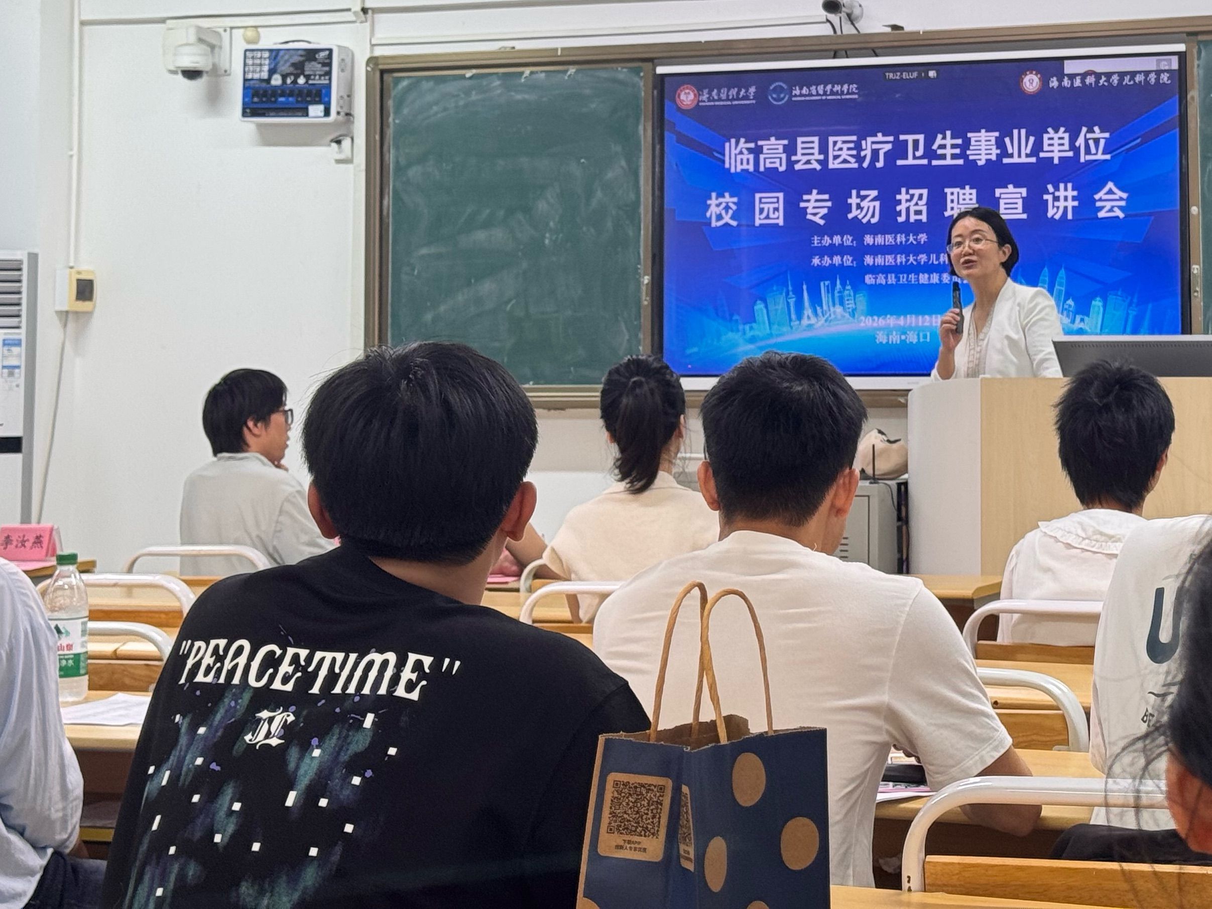 4月12日中午,海南医科大学儿科学院在第四教学楼举办了主题为"筑梦临高":临高专场招聘宣讲会。本次招聘会由儿科学院特邀临高县卫生健康委员会牵头,携临高县人民医院、临高县中医院、临高县妇幼保健院及基层卫生院等多家省内优质医疗单位组团进校引才,为应届医学毕业生搭建精准就业对接平台,提供海量优质医疗岗位。本次招聘共设置45个岗位,涵盖临床医学,中医学,口腔医学,药学,护理学等多个专业方向。