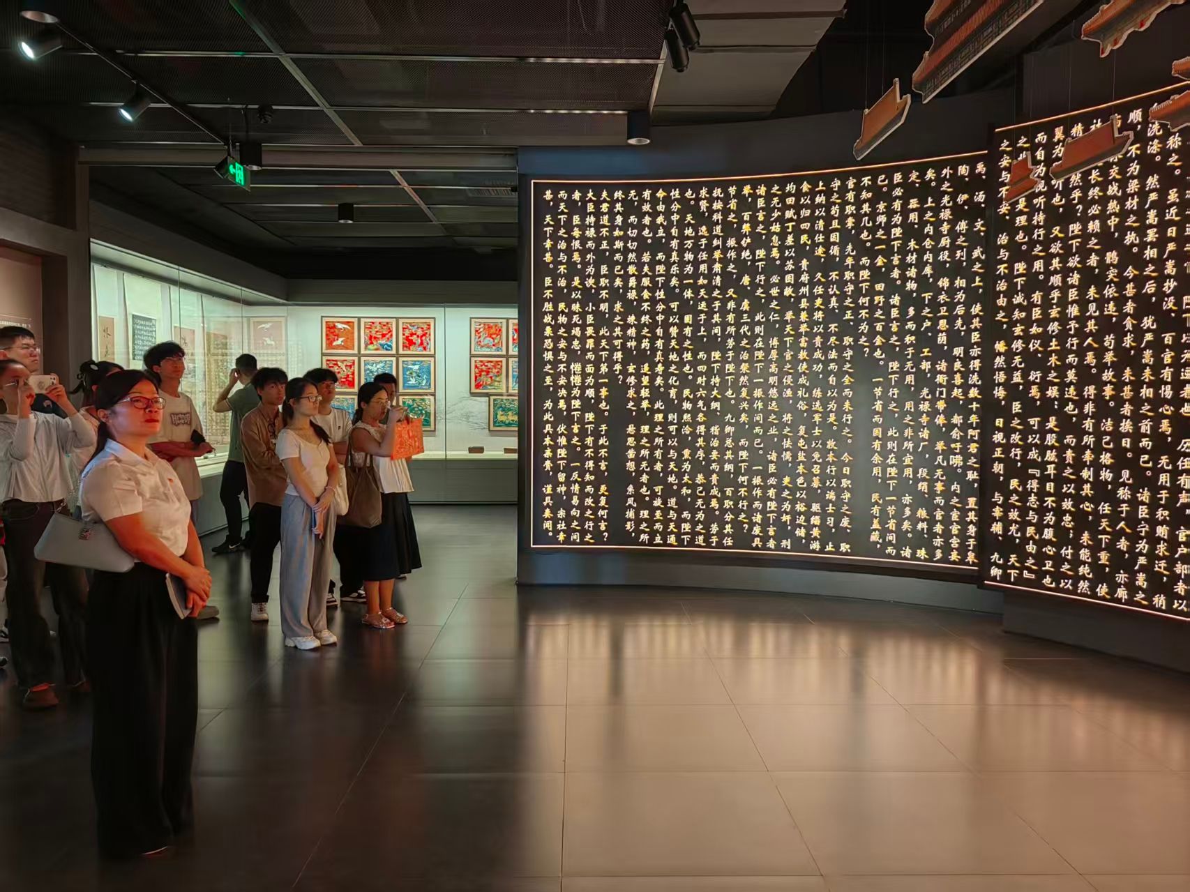 走进海瑞文化公园,师生们跟随讲解员脚步,依次参观了海瑞生平事迹展馆、廉政文化长廊等主题展区。在一楼主题墙前的“刚正不阿、清正廉洁”箴言格外醒目,这是习近平总书记对海瑞精神的深刻评价,也让在场师生对“海青天”的为人处世之道有了更直观的理解。