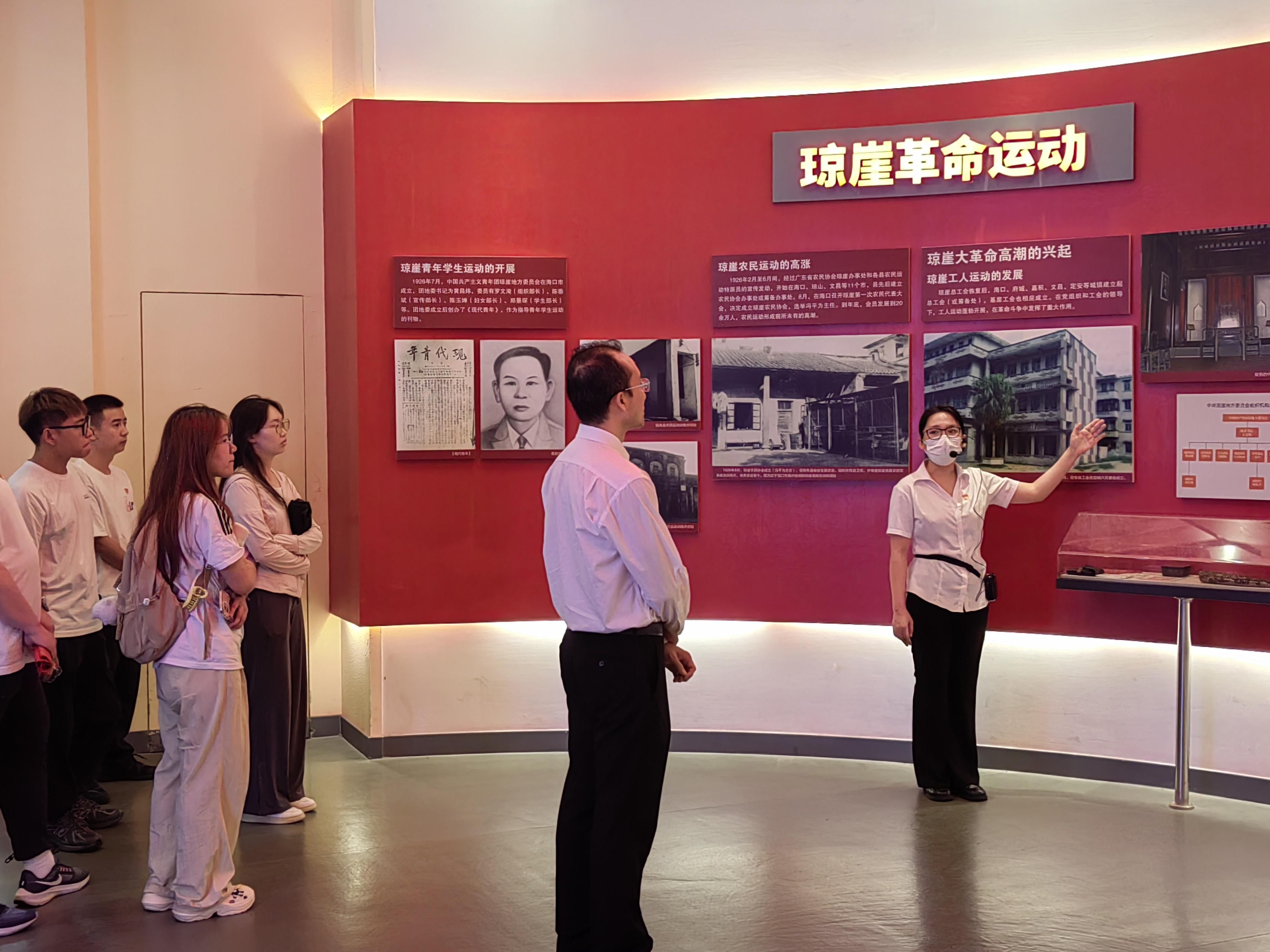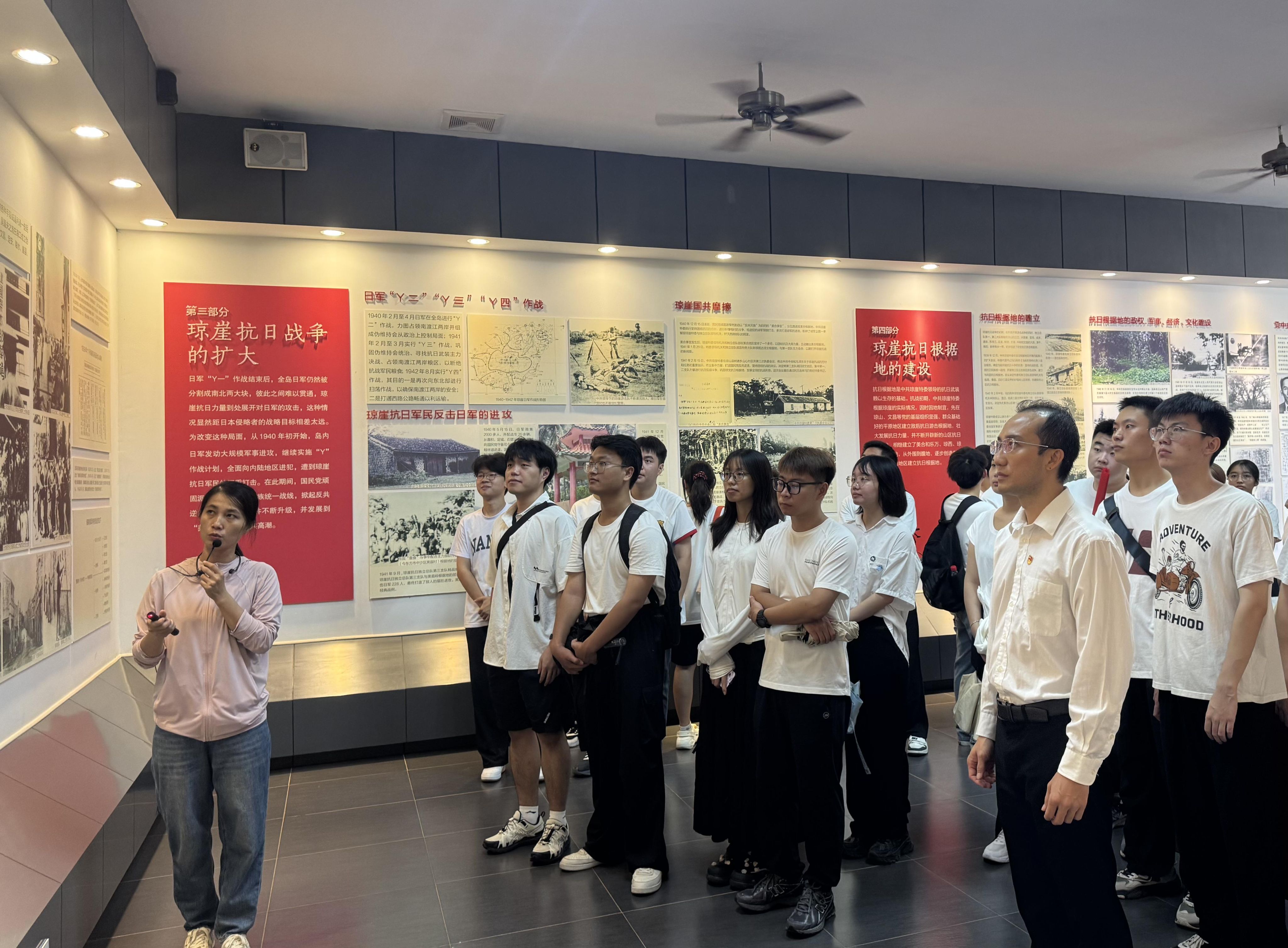 琼崖工农红军改编这一历史性事件标志着琼崖抗日民族统一战线的形成,也为琼崖抗战胜利奠定了坚实基础。在旧址纪念馆内,泛黄的照片、锈迹斑斑的武器、珍贵的历史文献等展品,无声地讲述着琼崖革命的艰辛历程。成员们仔细聆听讲解员的介绍,深入了解云龙改编的背景、过程和重要意义,真切感受到了革命先辈们在民族危亡时刻,以坚定的信念和无畏的勇气,团结一心、共御外敌的伟大精神。有的同学不禁感叹:“看到这些展品,仿佛能看到当年革命战士们浴血奋战的身影,他们的奉献和牺牲换来了今天的和平,我们一定要倍加珍惜。”