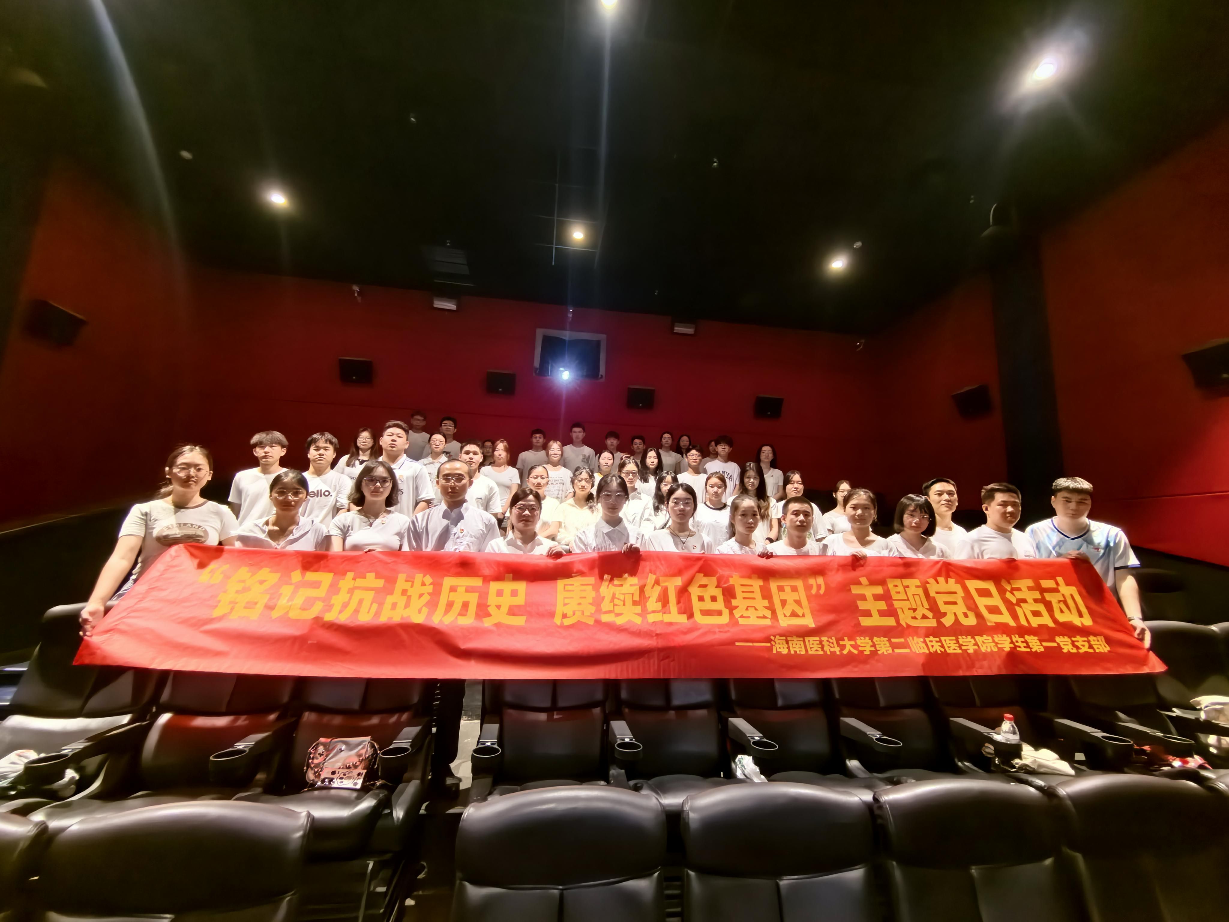 2025年8月31日上午,在第80个中国人民抗日战争胜利纪念日即将到来之际,海南医科大学第二临床医学院第一党支部组织全体党员、预备党员、发展对象及入党积极分子共48人,前往中视影城喜盈门店五楼影厅集中观看抗战题材纪录影片《南京照相馆》,这不仅是一次深刻的爱国主义教育,也是警醒大家要珍视和平年代,坚定矢志报国的决心。