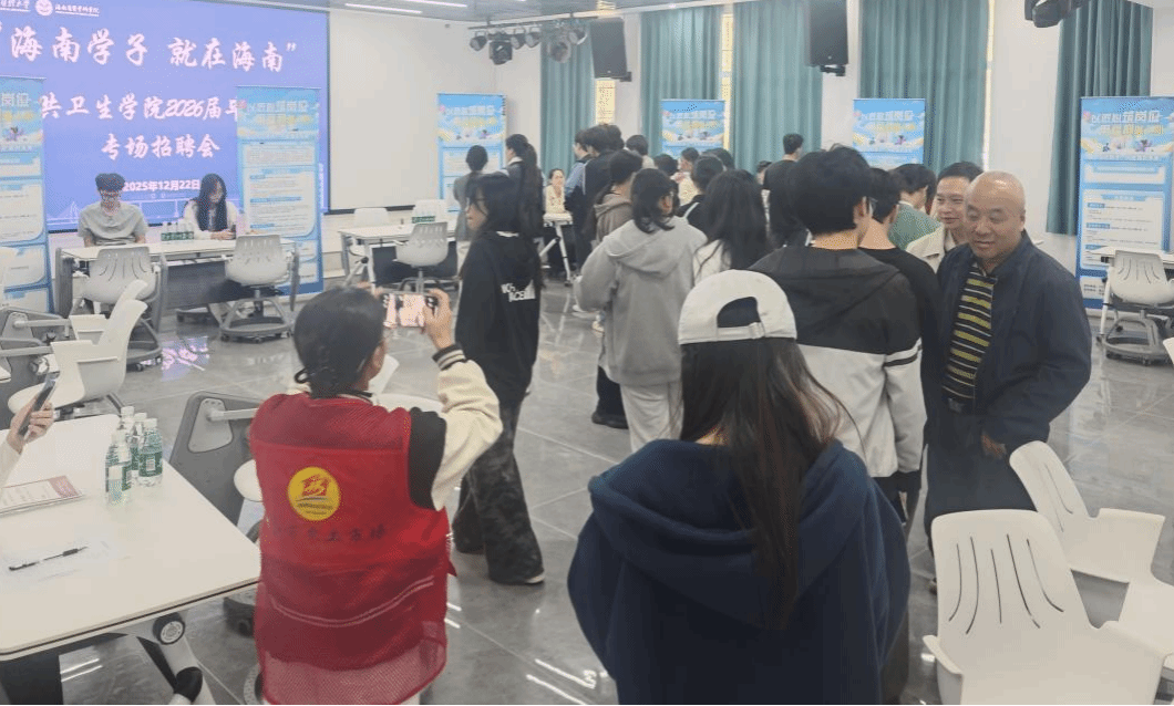 此次招聘会的成功举办,离不开学院领导的高度关注与亲自推动。活动不仅为毕业生提供了30余个优质就业岗位,帮助学子直观认知行业需求与职场环境,更搭建起“校企政”合作平台,积极推动“海南学子,就在海南”留才行动,引导优秀毕业生扎根自贸港、服务健康海南,为自贸港建设筑牢人才支撑。