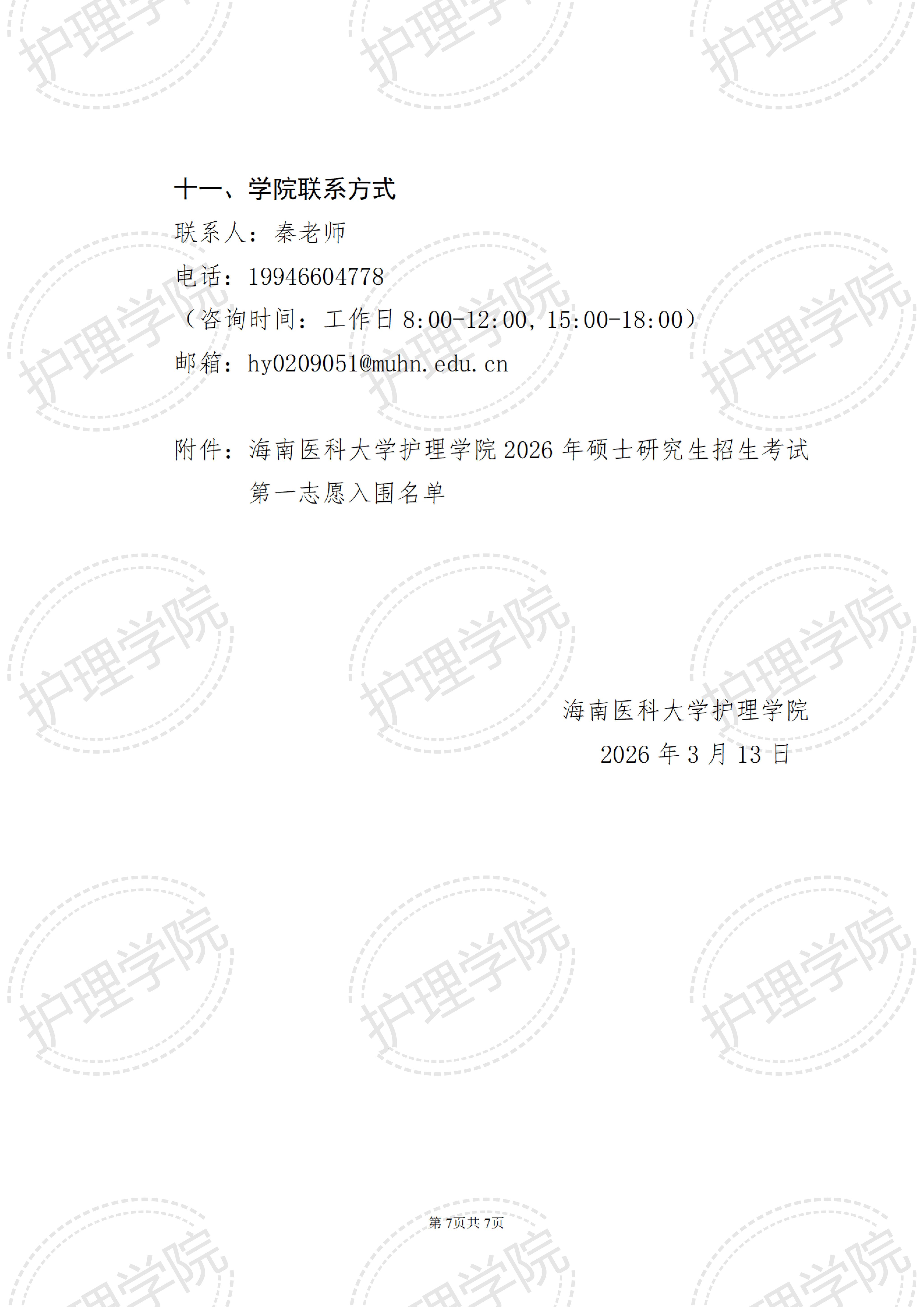 附件:海南医科大学护理学院2026年硕士研究生招生考试第一志愿入围名单.xls