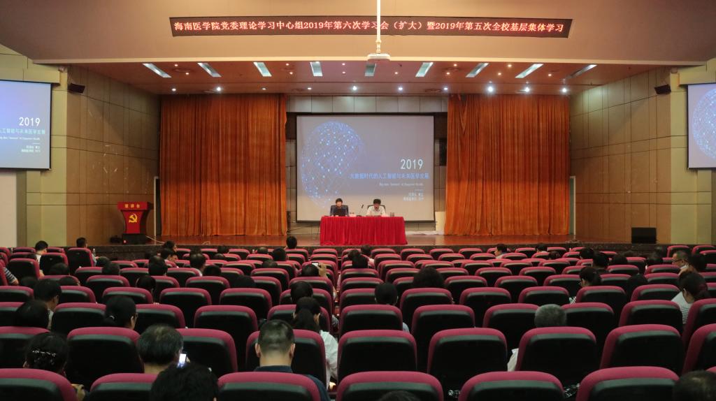 7月4日下午,海南医学院党委理论学习中心组2019年第六次学习会(扩大)暨2019年第五次全校基层集体学习大会在我校国际报告厅召开。会议邀请华中科技大学硕士生导师何泽仪博士和海口市龙华区消防大队宣传教员潘伟分别作《大数据时代的人工智能与未来医学发展》与《消防安全、生产安全知识》专题讲座。会议由学校党委副书记、纪委书记谢江波主持。