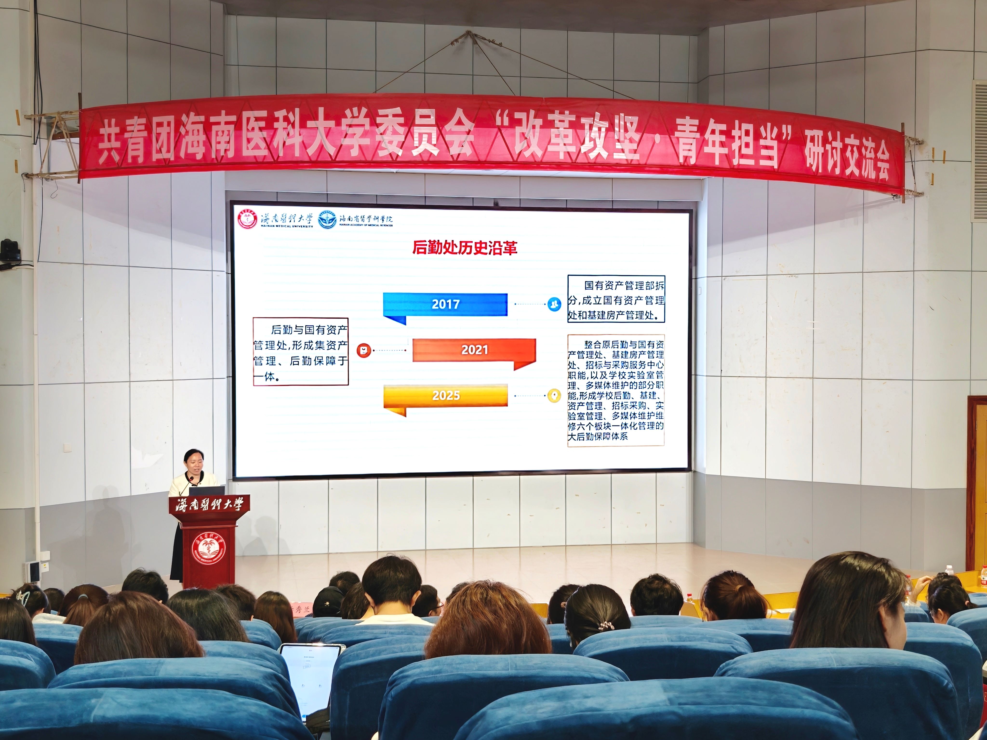 后勤处副处长李秀兰以“无声的守护者:海医大后勤服务——您的校园生活引擎”为题作分享,她围绕校园后勤服务保障展开介绍,表示通过强化队伍建设、推进学生宿舍改造、升级食堂环境等举措,为学生的学习与生活保驾护航。