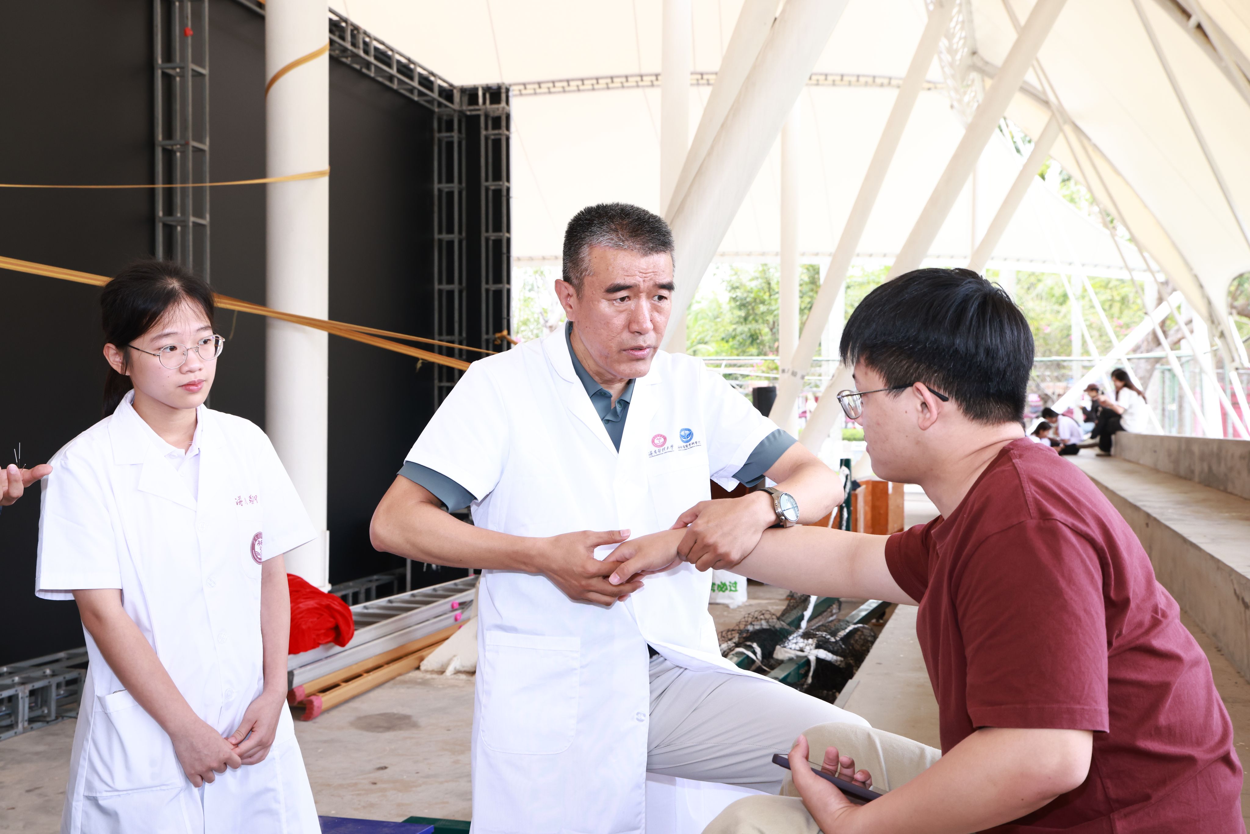 开幕式后,同步启动了校园公益义诊与特色中医体验活动。专业师生团队现场提供中医诊疗、健康咨询、特色技法体验等服务,并开通线上预约与现场应急号源,让中医药文化走出课堂、走进校园、服务师生,以实际行动践行国医誓言,让千年国粹在新时代绽放光彩。