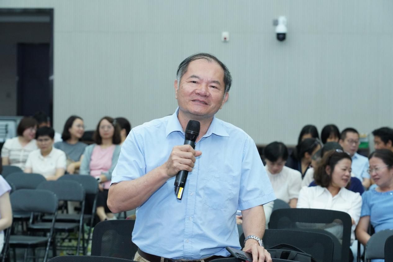 报告结束后,王庭槐和现场与会教师围绕AI教学应用展开了热烈讨论。针对如何平衡技术辅助与学生思维培养的问题,王教授结合三元协同新范式的核心理念,从教学设计、任务布置、评价体系等方面给出针对性指导建议,为现场教师破解AI教学应用中的现实难题提供了清晰思路。