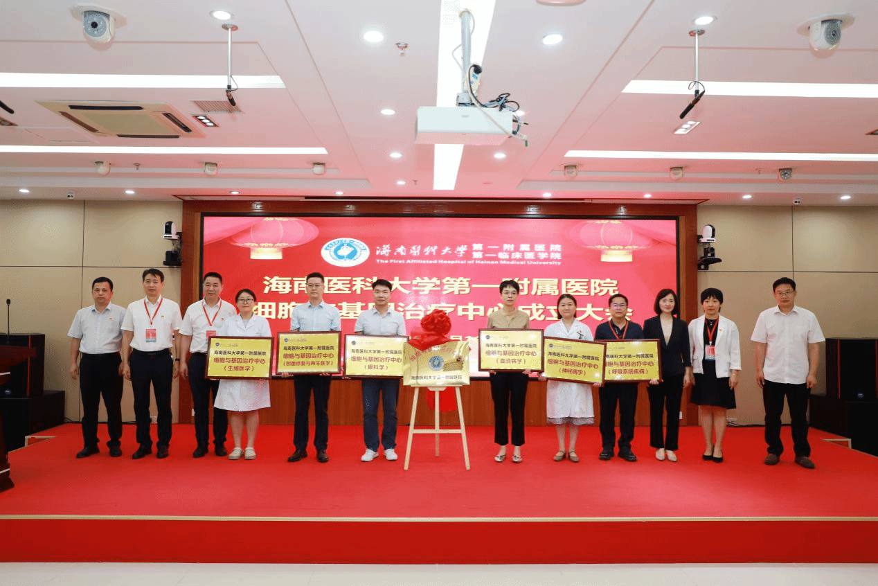 4月16日,海南医科大学第一附属医院举行细胞与基因治疗中心揭牌仪式。医院党委书记徐剑、院长李琪共同为中心揭牌,院领导班子成员为呼吸系统疾病、神经病学、眼科学、生殖医学、血液病学、创面修复与再生医学6个首批生物医学新技术临床研究方向分中心授牌。