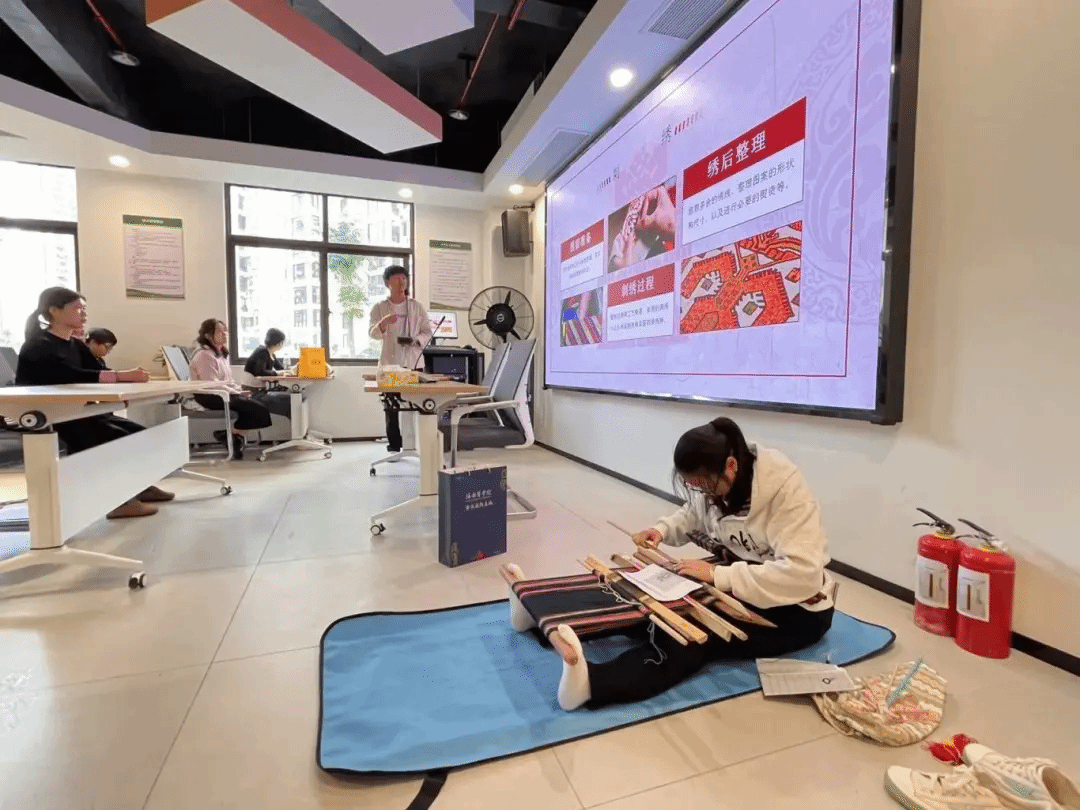 学校构建覆盖专业实践基地、非遗传承基地、思政教育基地等的五育实践体系,将思政教育植入学生喜闻乐见的劳动体验与身心成长活动中。在南药种植基地、蔬果种植基地,学生通过翻土播种、采收炮制的劳作实践,体悟“一分耕耘一分收获”的奋斗精神;在“八段锦减压角”,师生共练传统功法,在呼吸吐纳间感受传统文化的生命智慧;黎歌合唱团用多语言演绎黎族歌谣,手绘艺术基地让学生以画笔定格红色故事;学校也建立了包括前文提到的“黎锦织造”“藤竹编”等非遗技艺实践基地——这些“上手实践+文化体验”的模式,打破了思政教育的刻板印象,让学生在沉浸式参与中自然理解“工匠精神”“文化传承”的深刻内涵。赴西班牙交流时展示的黎锦编织、藤竹编技艺,均是学生作品,不仅被中国驻巴塞罗那领事馆收藏,更让青年在跨文化对话中坚定“以文化人、以文育人”的自信,完成从“认知认同”到“实践输出”的成长蜕变。