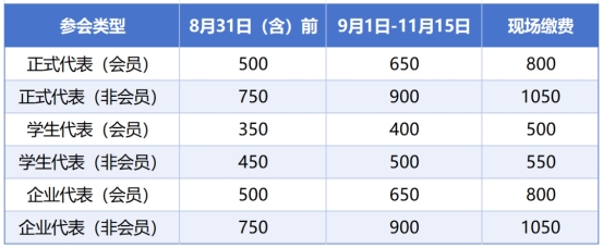 请在2025年11月15日前在大会官方网站注册报名并缴纳会议注册费,本次大会特设优惠注册费用(费用减半),注册费标准如下: