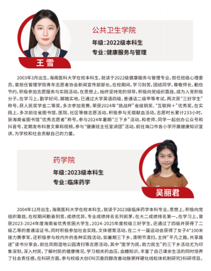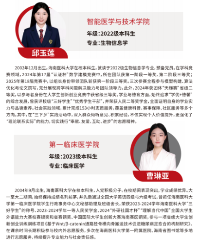 编者按:2025年新生开学典礼上,我校继续颁发了“强国奖学金”及“强华奖学金”。“强华奖学金”由陈国强校长与夫人贺国华女士个人捐资设立,自2024年至2028年,每年捐赠50万元用于奖励品学兼优、家庭困难的优秀本科生。2025年,共评选出48名优秀本科生,他们用奋斗书写青春,充分展现了海医学子的卓越风采。