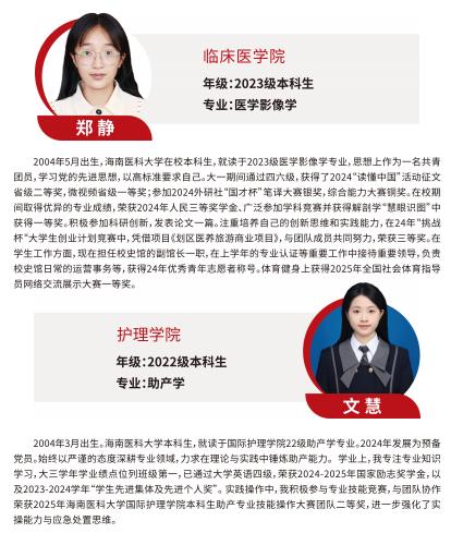 2025年新生开学典礼上,我校继续颁发了“强国奖学金”及“强华奖学金”。“强华奖学金”由陈国强校长与夫人贺国华女士个人捐资设立,自2024年至2028年,每年捐赠50万元用于奖励品学兼优、家庭困难的优秀本科生。2025年,共评选出48名优秀本科生,他们用奋斗书写青春,充分展现了海医学子的卓越风采。