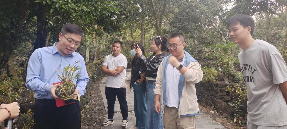 2025年11月23日,机关党委教务党支部赴海口市秀英区石山镇,开展“重走总书记考察路线、学思践悟党的二十届四中全会精神”主题党日活动。支部党员循着2018年4月13日习近平总书记的考察足迹,走进美社村、施茶村火山石斛园,在火山岩村落与千亩石斛之间,上了一堂“行走的思政课”。
