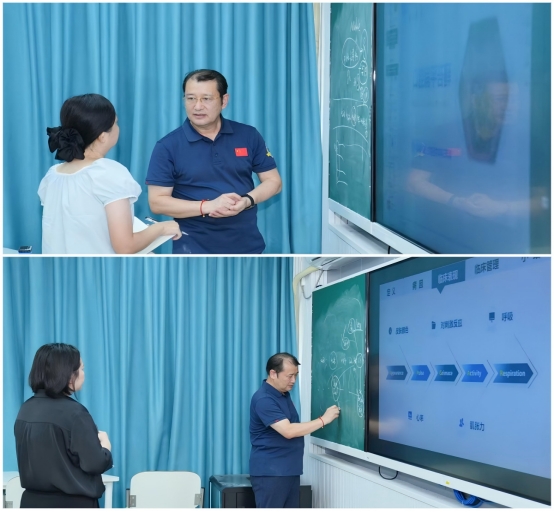 本次培训紧扣医学专业教学特点与青年教师教学成长需求,以 “一对一精准指导”的模式开展,旨在通过名师引路,为青年教师梳理教学设计思路、优化教学方法,推动教学能力提升与教研活动提质双向赋能。董为人教授凭借深厚的医学教育积淀与丰富的教学指导经验,围绕混合式教与学理念落地、课程思政有机融入、一流课堂设计逻辑三大核心内容,为参训教师系统讲解优质课堂的构建思路与实施路径。他结合医学类专业实践性强的特点,重点阐释如何实现临床实践与课堂教学的深度融合,指导教师在教学中打造兼具学术性、逻辑性、思想性与艺术性的课堂。