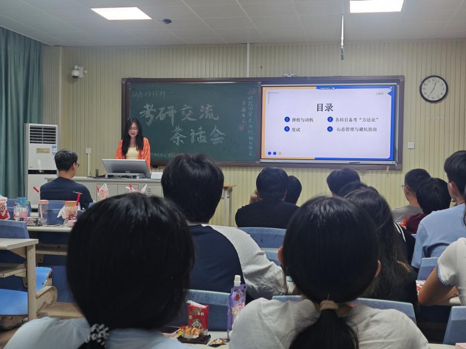 分享结束后,交流会进入互动答疑环节。2023级同学们结合自身备考困惑进行提问,聚焦院校选择中的利弊权衡、专业课复习的重难点、复试的细节把控、备考时间的合理分配等实际问题,提问精准且贴合需求。2022级“上岸”学长学姐们耐心细致、毫无保留,逐一回答每一个问题,既有宏观的方向指引,也有具体的操作建议,更分享了自己备考中的失误与反思。