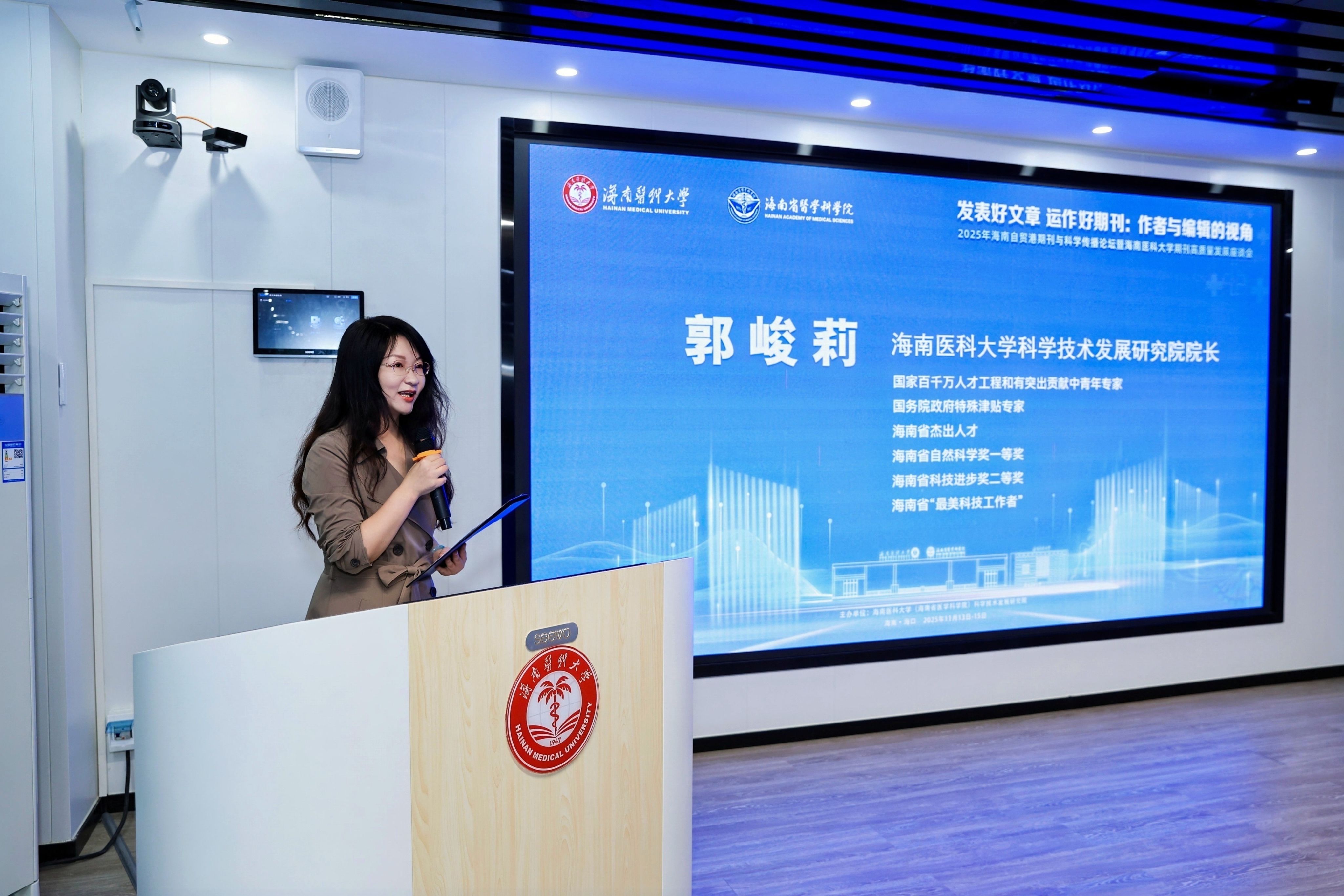 11月13日-15日,“发表好文章 运作好期刊:作者与编辑的视角”——2025年海南自贸港期刊与科学传播论坛暨海南医科大学期刊高质量发展座谈会在我校成功召开。会议汇聚了国内高校办刊专家、国内外知名期刊编辑部主任及资深编辑,围绕国际期刊投稿策略、科研诚信建设、科研写作技巧与策略、学术期刊与学科建设协同发展等议题展开深入交流。开幕式由我校科学技术发展研究院院长郭峻莉主持。海南省期刊协会会长刘家诚、常务副会长兼秘书长罗启香等省内期刊界代表出席了本次大会。