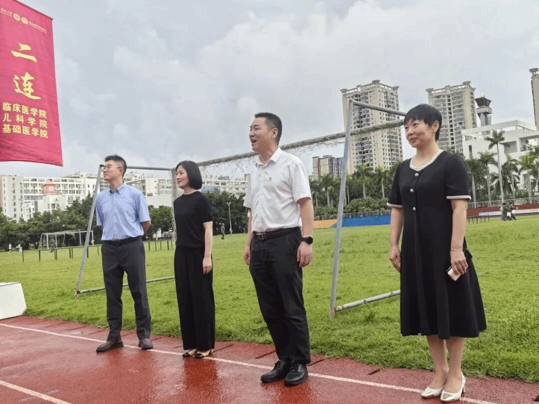 2025年9月17日下午,海南医科大学第一临床医学院在城西校区户外操场组织学院领导军训“送清凉”活动。学院党委徐剑书记、李琪院长、党委孟凡莉副书记携学生工作办相关人员出席活动,为在闷热的环境下军训的2025级新生带去清凉与关怀,缓解军训的枯燥与疲倦。