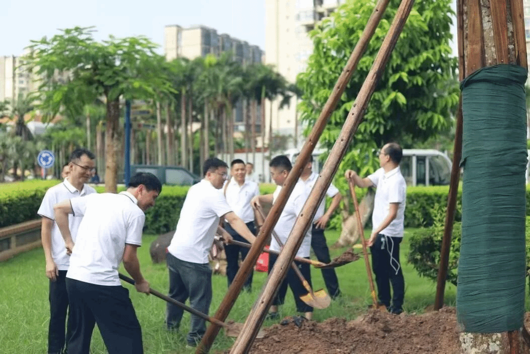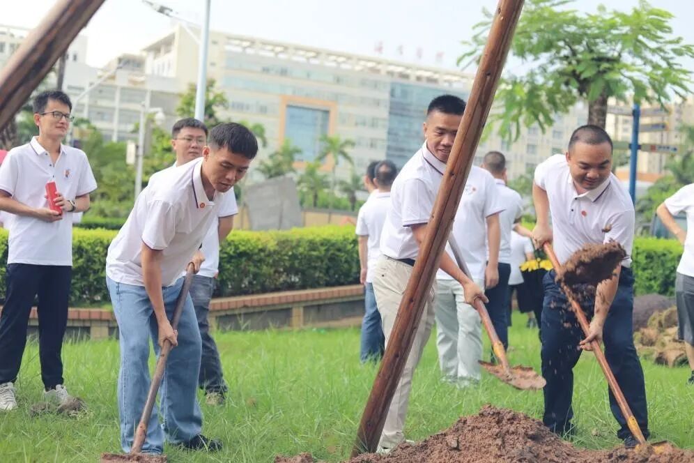随后,在淅淅沥沥的雨中,众人撑着伞缓缓步入校史馆,在泛黄的照片与闪亮的奖杯间重读母校七十余载春秋。雨停云散,校友们移步户外,在葱郁的校园一隅并肩俯身,挥锹、扶苗、培土、浇水,共同植下一棵“校友纪念树”,让新生的根系与绵长的回忆一同深扎这片热土,向着未来生长。