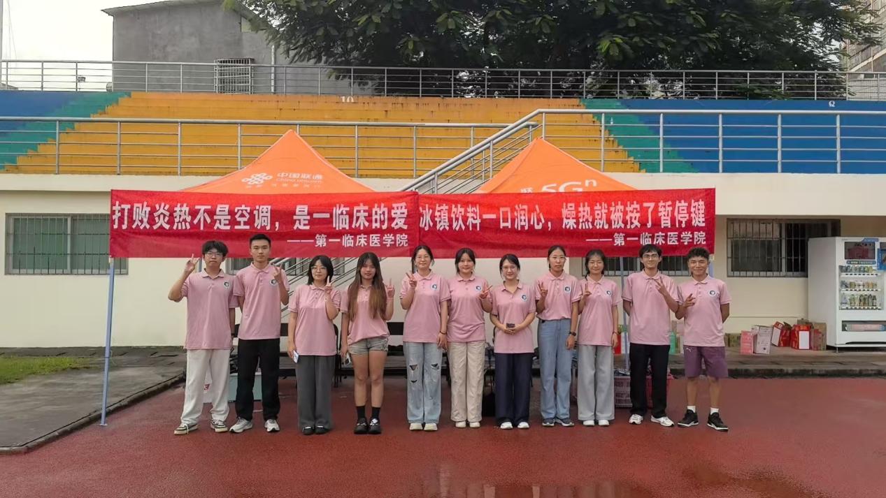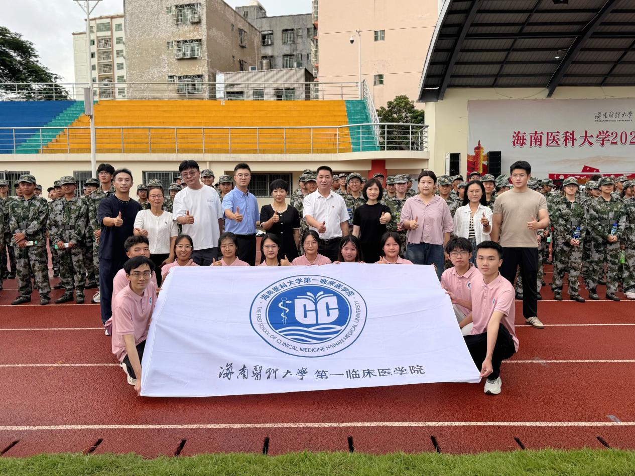 2025年9月17日下午,海南医科大学第一临床医学院在城西校区户外操场开展军训“送清凉”慰问活动。院党委书记徐剑、院长李琪、党委副书记孟凡莉为在闷热的环境下军训的2025级新生带去清凉与关怀。