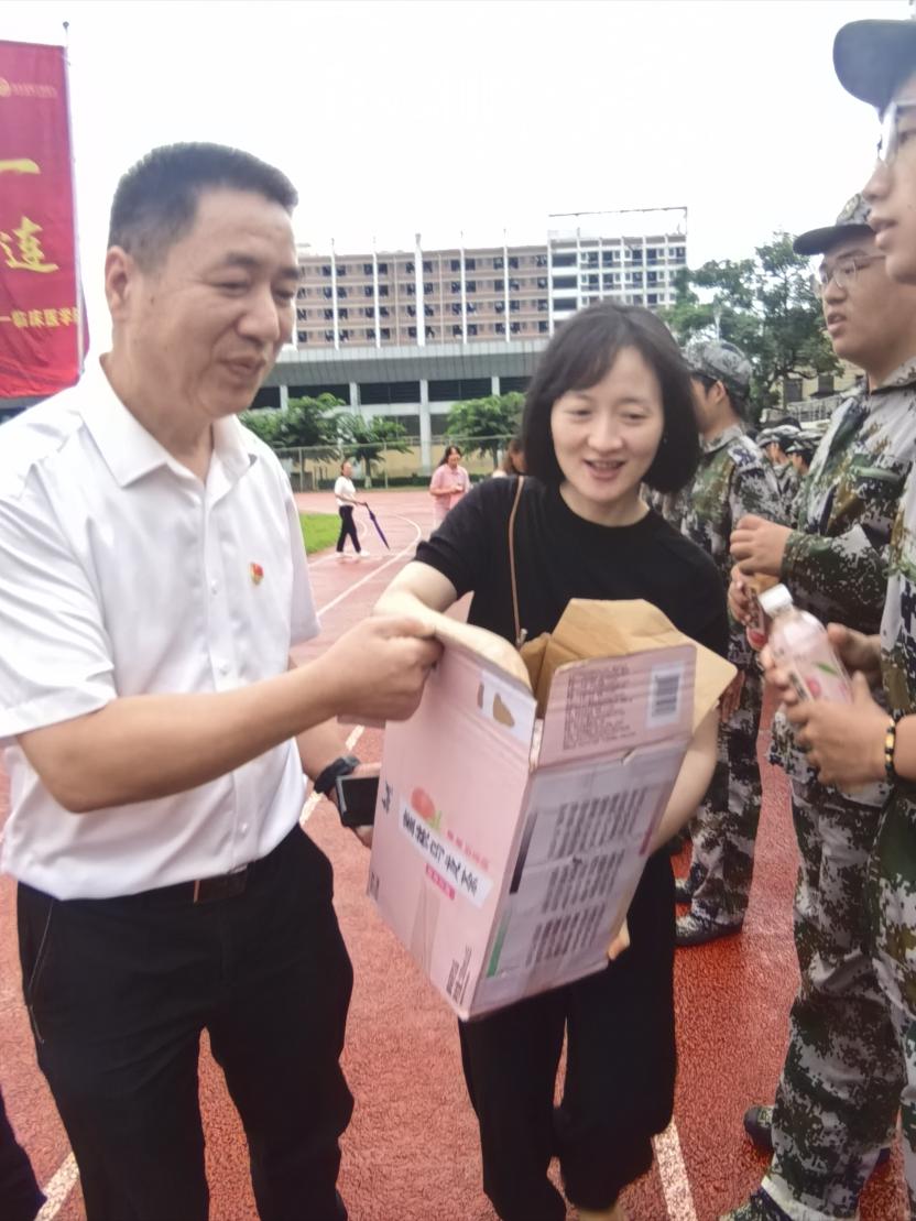 慰问中,党委书记徐剑对新入学的大一新生表示热烈欢迎,同时也为学生军训方阵的齐整以及新生军训过程中昂扬的精神面貌深感欣慰。他说,“医者仁心”不仅体现在未来的手术台与病房中,更源于日常生活中的细微关怀,本次活动正是第一临床医学院“家文化”的生动体现。最后,徐剑鼓励军训新生将军训的优良作风延续到今后五年的本科求学之路上,继续坚持不懈,脚踏实地,并最终学有所成。