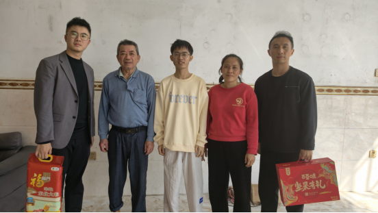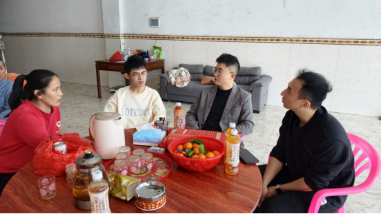 本次家访工作聚焦四类学生群体代表,分别是因病休学、家庭困难、农村定向以及品学兼优的学生。家访团队先后走访了2025级临床医学本科定向9班的陈珠、马加尉,2022级临床医学本科5班的何礼壮以及2022级临床医学本科6班的朱勇亮等4位学生家庭。每到一户家庭,家访团队都与家长、学生围坐长谈,团委书记赖信翔向家长汇报学校的办学特色、学生日常管理、资助、推优、保研等政策,同时认真听取学生家长对学生管理、后勤保障、学风建设的意见和建议,并就家长的教育期望与亲子沟通方式交换了意见;辅导员赵凡、袁铁超则向学生家长反馈学生在校期间整体的学习成绩、行为表现、社会实践参与等情况,同时就指导学生假期生活方面鼓励学生参与社会公益性实践;提醒学生注意交通安全、消防安全、食品安全、网络安全,谨防电信经济诈骗等。走访的最后,家访团队为学生家庭送上节日慰问品,传递学院的关怀与温暖。
