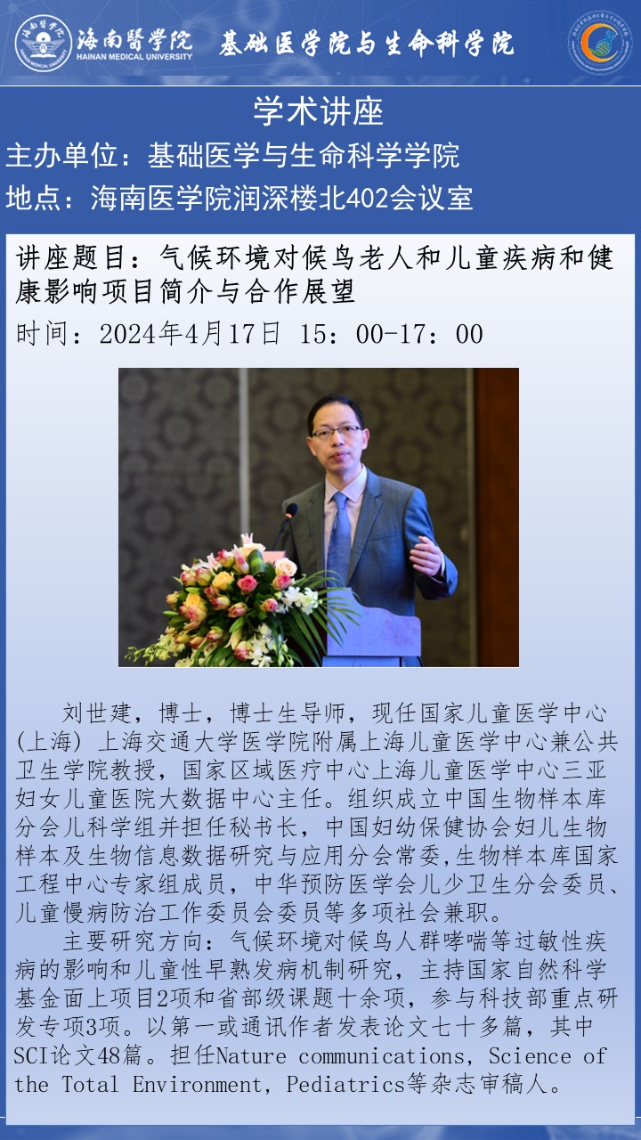 气候环境对候乌老人和儿童疾病和健康影响项目简介与合作展望