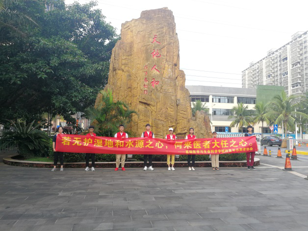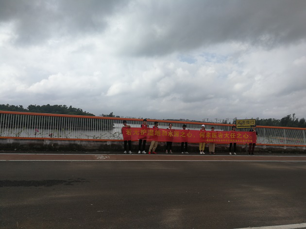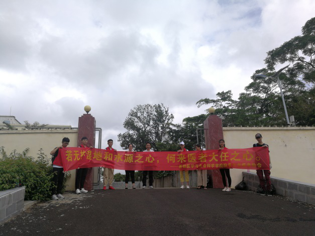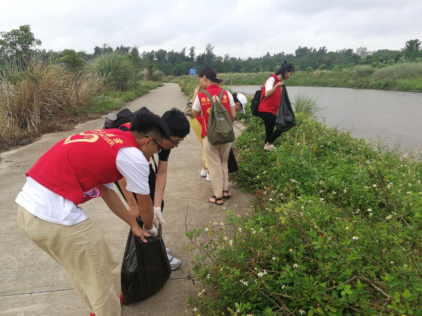 2018年10月21日,时隔一周,同样是星期天的早上七点半。海南医学院的基础团委老师劳梅丽带领着基础医学与生命科学学院学生会青年志愿者协会的林俞辰会长、17生物技术本的蒲金康、18预科本的韦小玲、邓智杰、伍世鹏、庄冬梅、刘美观和刘联国同学,沿着美舍河岸的另一条路捡拾河岸草地里的废弃物,开展第二期守卫美舍河源头的“清源”行动。我们也成功地和沙坡水库的工作人员陈文虎同志取得联系,在他的帮助下,进入水库内部捡拾了更多的废弃物。