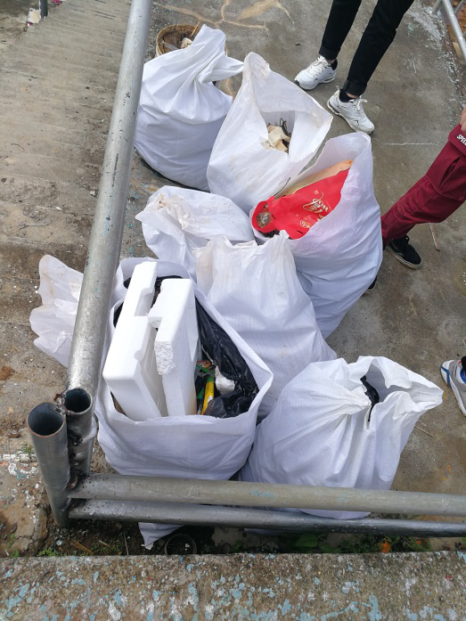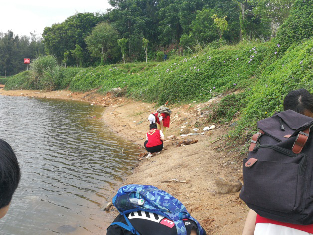 沙坡水库的环境污染十分严重,水里岸边都可见垃圾袋。水库里还有许多人在非法钓鱼,他们废弃的渔网和各种用品的残留垃圾覆盖了整个水库,从土里拉出的塑料袋仿佛已堆积了几年,可见这几年来并没有人治理水库的环境。经过我们一上午的忙碌,美舍河和沙坡水库的环境都得到了很大的改善,即使只有两百米的清理,我们也收获了十麻袋左右“胜利的果实”,由此可见,我们的行动对环境保护起了重要的作用。