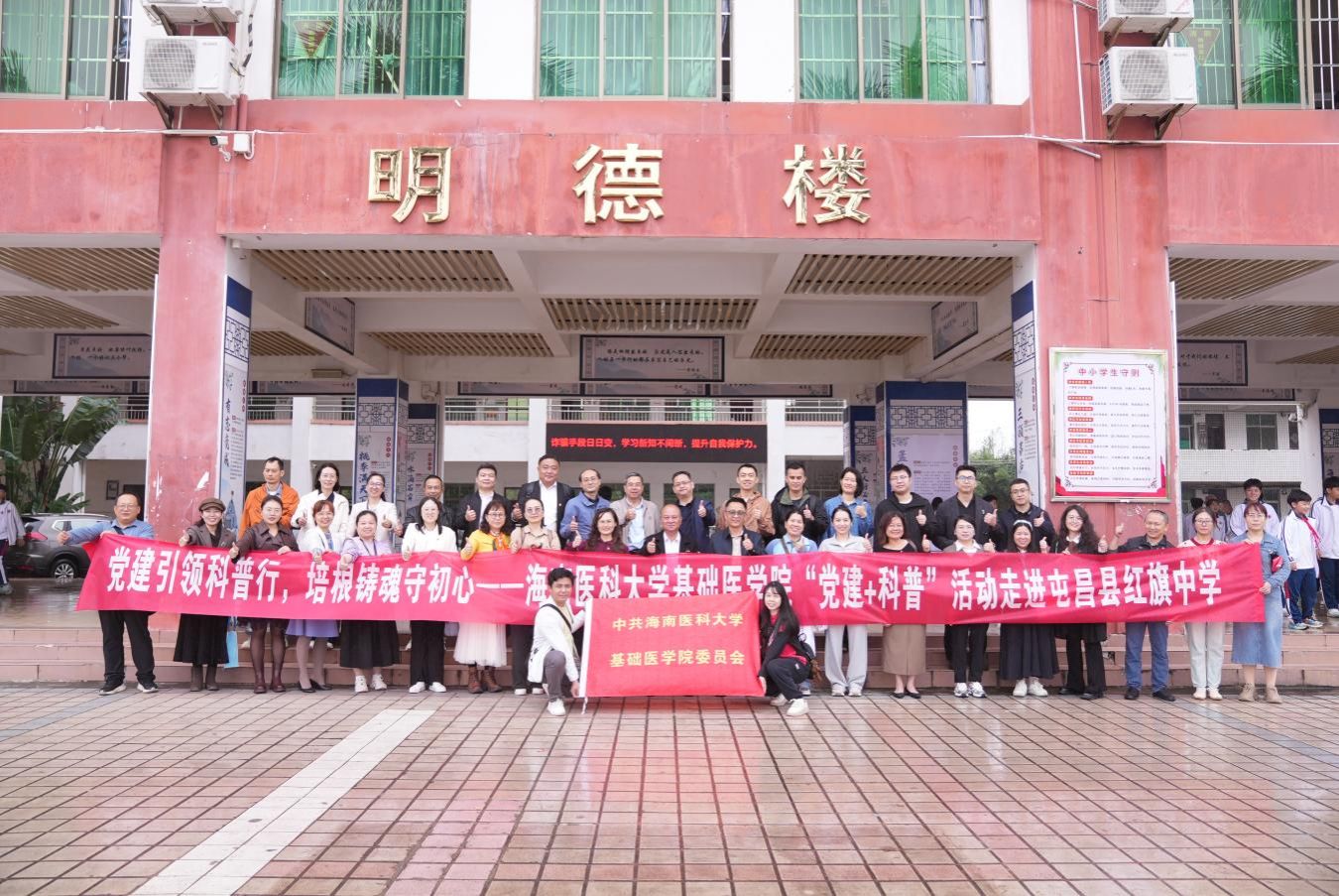 红色领航映初心,科普惠民践使命。2025年12月1日,海南医科大学基础医学院党委组织教师党员赴屯昌县红旗中学,成功开展“党建引领科普行,培根铸魂守初心”主题活动。此次活动将党性锤炼与科普服务深度融合,有力推动了党建工作与专业优势的同频共振。