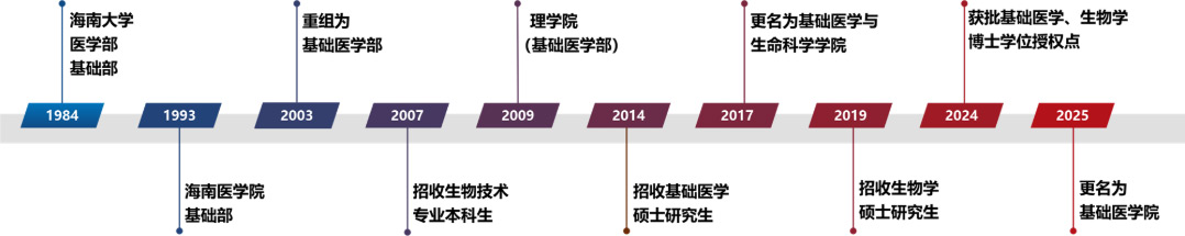 学院前身为1984年成立的基础医学部,历经四十余年的积淀与发展,现已迈入全新阶段。学院拥有国家优秀青年科学基金获得者1人、海南省C类人才4人,并建有第三批“全国高校黄大年式教师团队”。2024年,学院荣获“全国教育系统先进集体”称号。