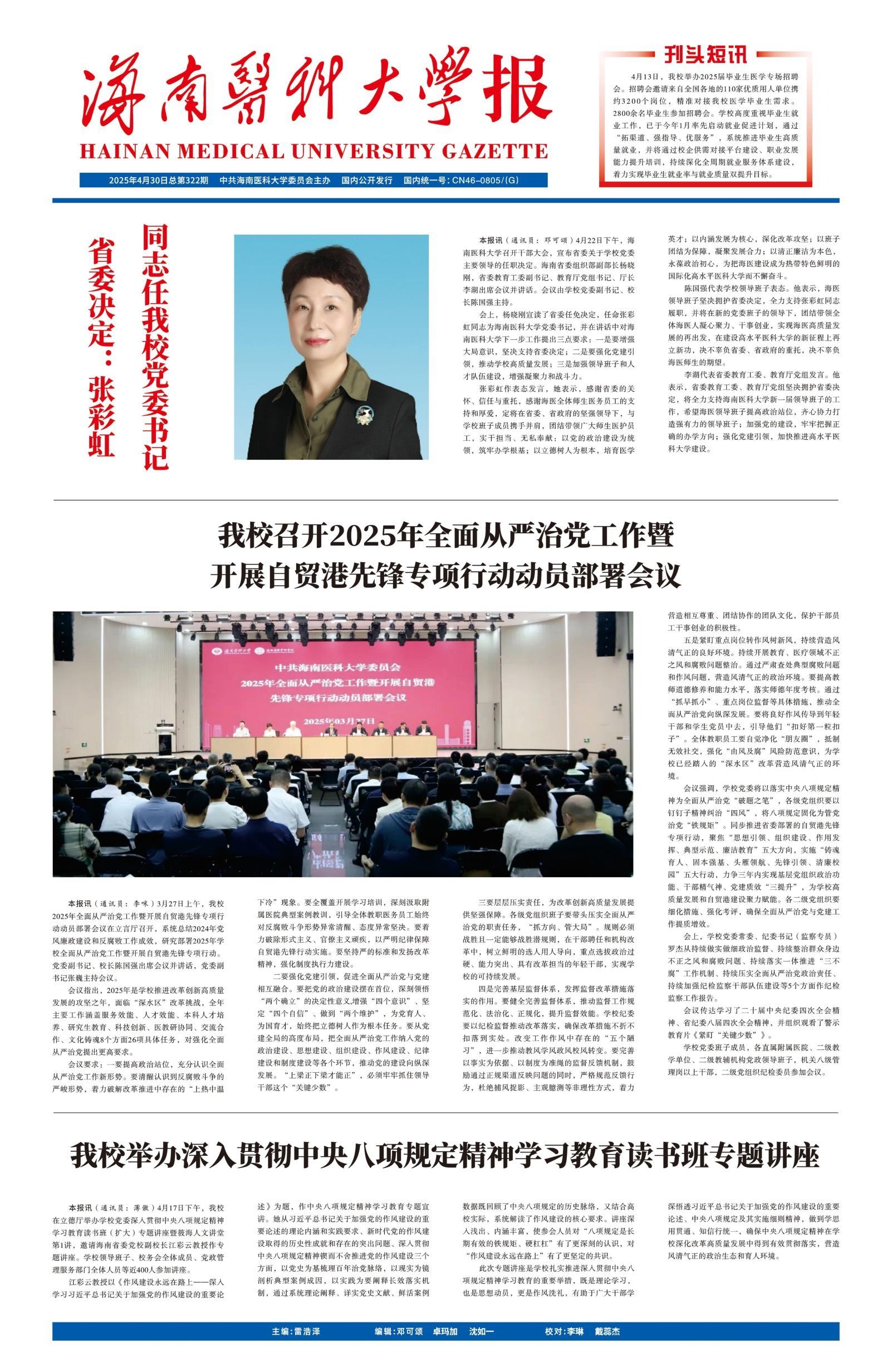 锚定自贸港封关新征程,筑牢医者初心使命 ——我校开展2025年下半年第二次全体党员...12月17日,海南医科大学开展2025年下半年第二次全体党员集中大课,集体观看中国科学院院士、南方科技大学校长薛其坤同志所作的题为《追求卓越矢志报国——在新征程上践行共产党员的初心与使命》专题报告。在海南自贸港12月18日封关运作进入冲刺倒计时的关键节点举办此次活动,旨在深入学习贯彻习近平新时代中国特色社会主义思想,强化党员教育培训实效,推动党建与医学教育、科研、服务深度融合。本次课程共设置1个主会场和104...