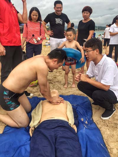 国际护理学院爱心医疗服务队在陵水县本号镇卫生院开展实践活动。队员们在那里开展卫生知识宣讲、建立健康档案、教授应急救护知识等实践活动,为当地的小朋友做体检,教他们做活动、玩游戏,寓教于乐,队员们教授当地的居民应急救护相关知识。在保亭县什玲镇卫生院开展实践活动的是公共卫生学院社会实践服务队。队员们走村串户,下到田间地头开展调研工作。“医路三亚”爱心医疗服务团队在三亚市吉阳区大东海开展社会实践。队员们在王长福老师的带领下在大东海海边开展应急救护培训,队员们精神饱满,许多游客在同学们的带动下饶有兴致、有模有样地学习起来,队员们则详细讲解每一项操作的动作要领。游客们都认为应急救护培训,为人为己、造福于民、功德无量。