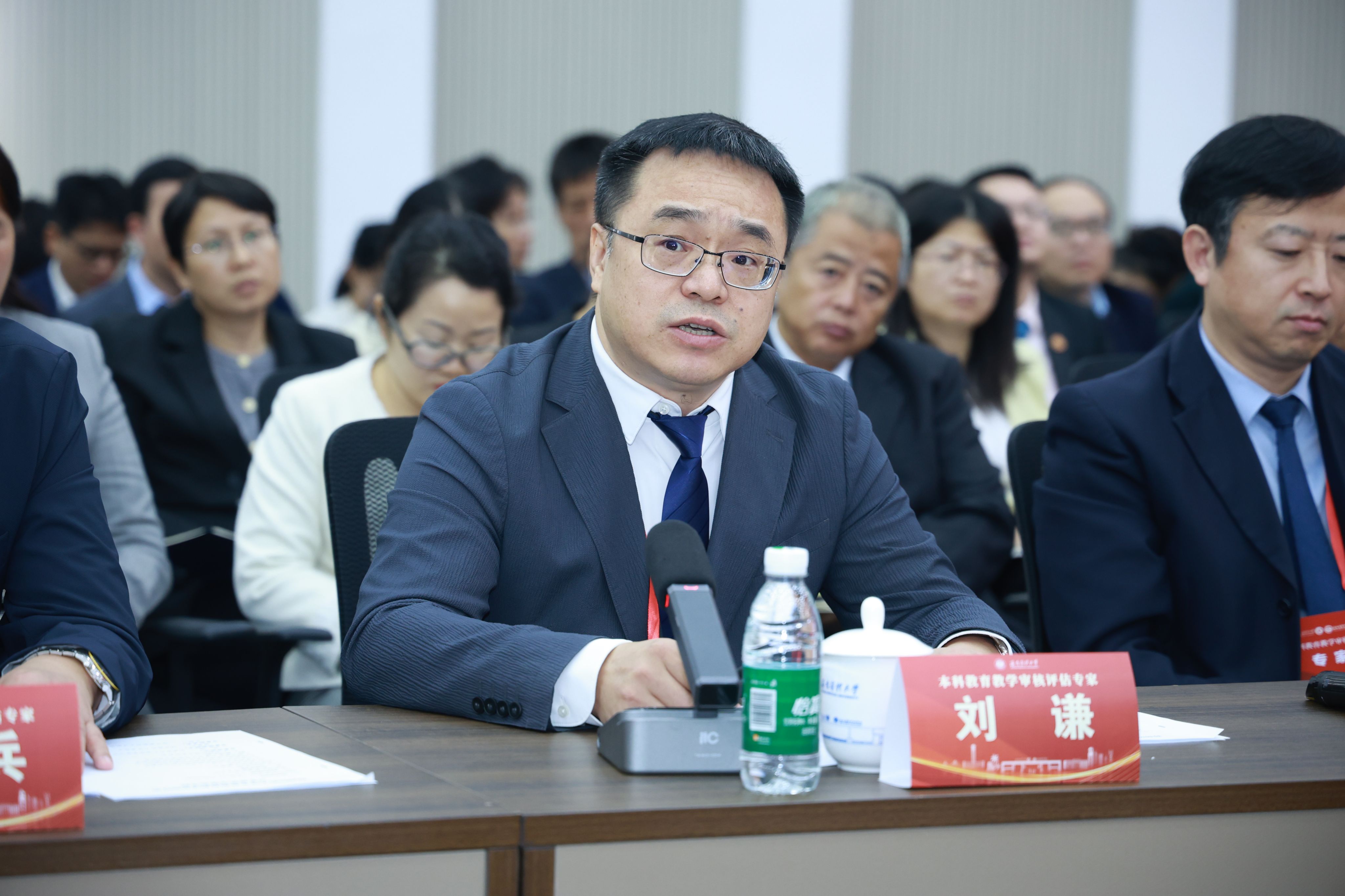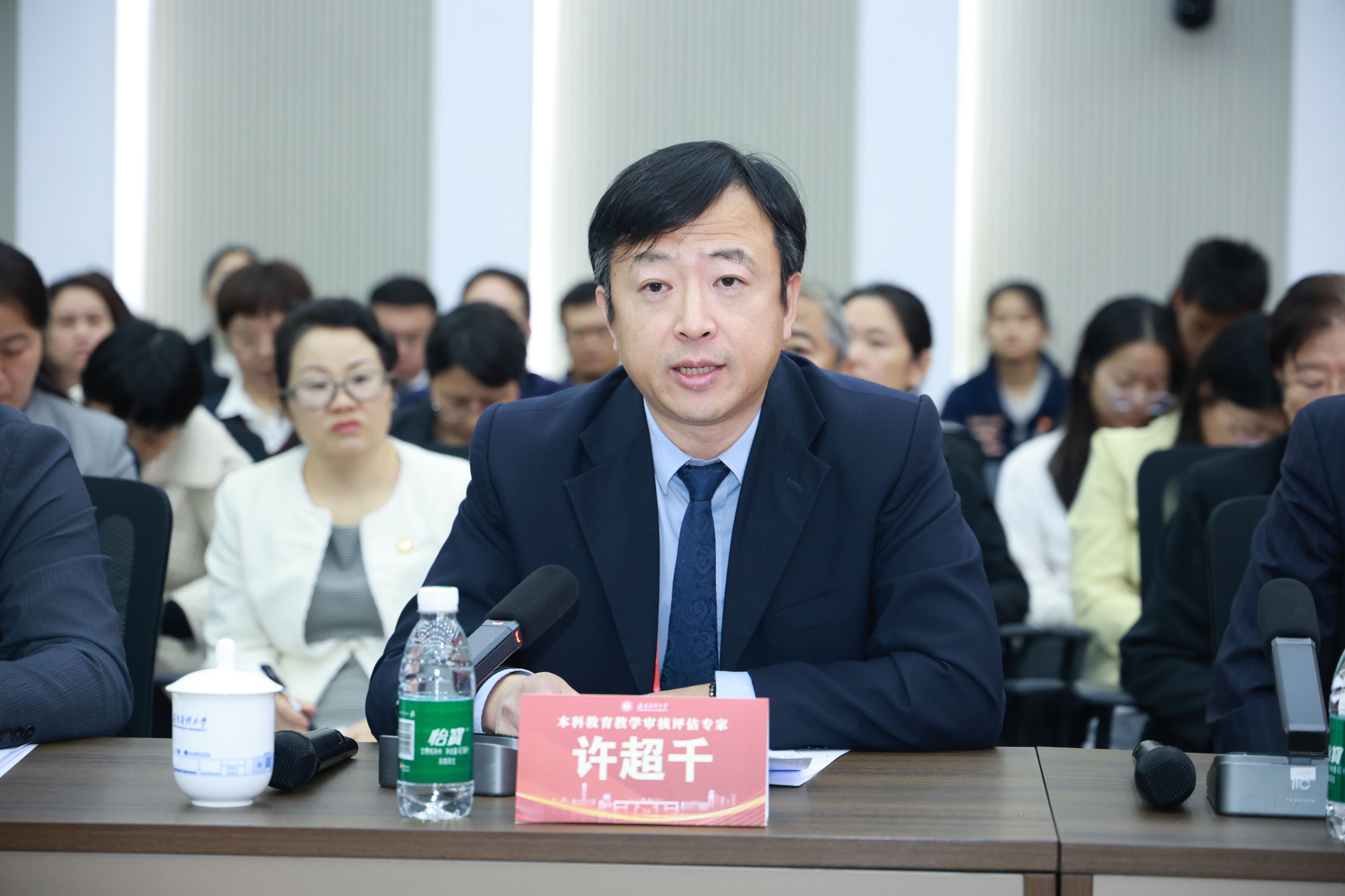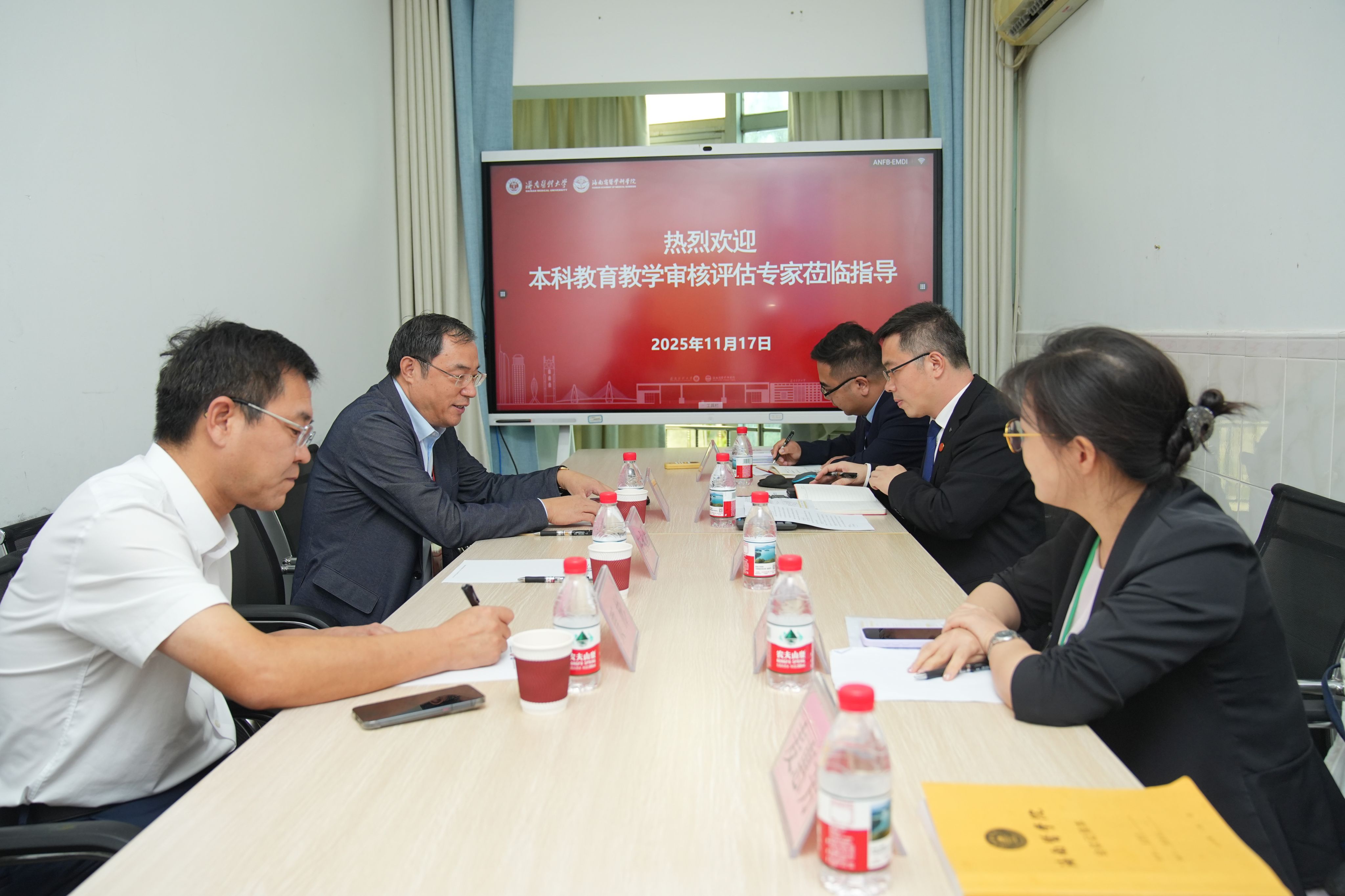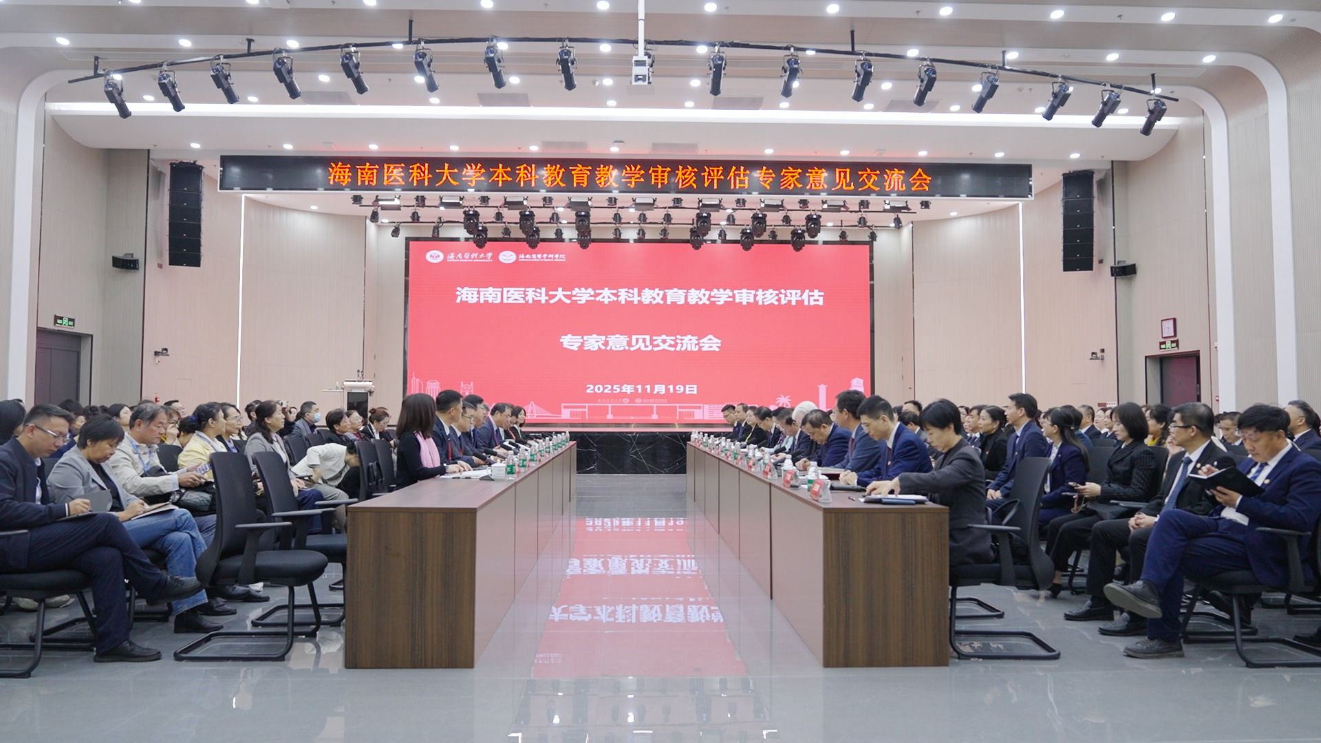 陈国强校长代表正在北京学习的张彩虹书记,代表学校对专家组的“把脉问诊”表示衷心感谢。他指出,在过去一个月的时间里,专家组成员从不同领域对学校本科教育教学工作进行了深入细致的审核评估,并细致入微地提供了专业指导和宝贵建议,值得全校领导干部和广大教师认真学习和深刻反思。他表示,本次审核评估不仅是对学校教育教学的全面检视,更是对海医过去两年改革成效与人才培养的系统性检验,专家组的肯定为全体海医人注入持续深化改革的信心与动力。他表示,学校将认真梳理专家组提出的意见建议,坚持以问题为导向,建立问题清单、整改清单和责任清单,真抓实干推动整改措施落到实处。他强调,本科教育教学是大学的根本使命,希望全校师生能够步步为营,久久为功,把此次评估作为新的起点,与海南自贸港建设同频共振,继续保持昂扬斗志,把专家评估意见充分融入“十五五”规划编制之中,并采取切实举措加以高质量落实。最后,他衷心感谢海南省委、省政府和省教育厅对海医高质量发展的大力支持,感谢全体海医师生为学校改革发展所付出的辛劳与汗水,并期待专家组成员继续关注海医,支持海医。