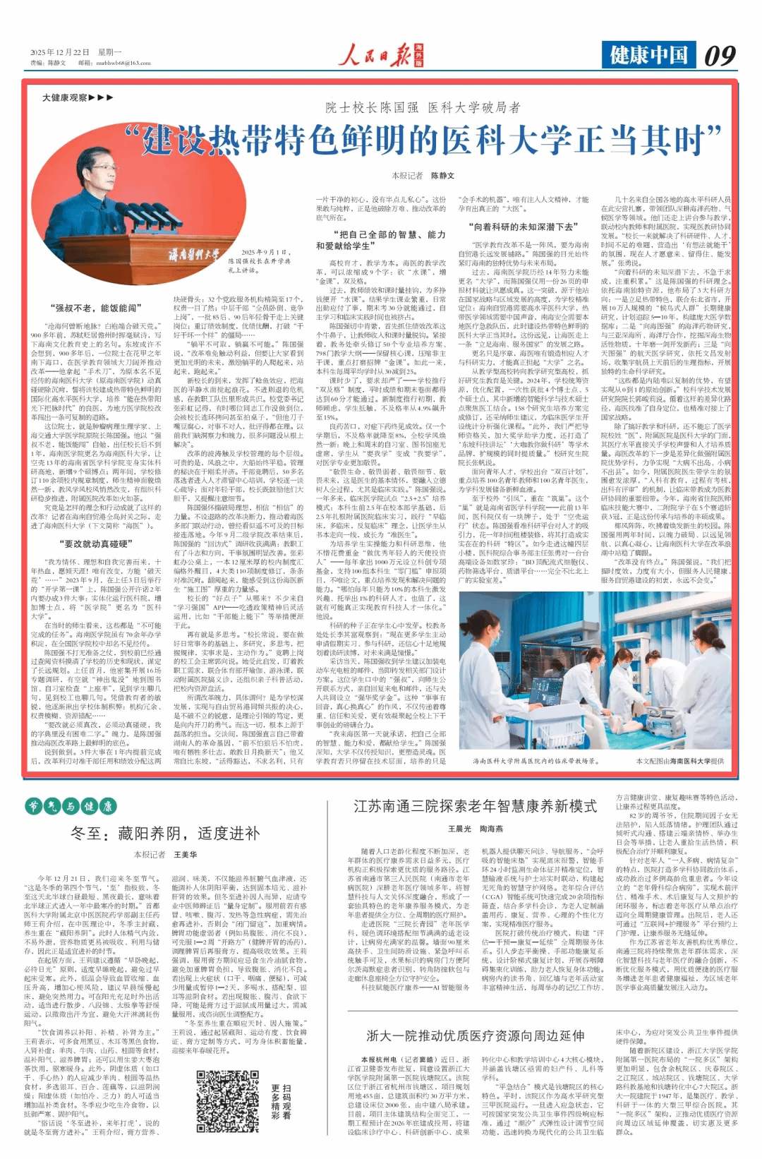 除了搞好教学和科研,还不能忘了医学院校姓“医”,附属医院是医科大学的门面,其医疗水平直接关乎学校声誉和人才培养质量。海医改革的下一步是差异化做强附属医院优势学科,力争实现“大病不出岛、小病不出县”。如今,附属医院医生带学生的氛围愈发浓厚,“入科有教育,过程有考核,出科有评审”的机制,让临床带教成为医教研协同的重要纽带。今年,海南省住院医师临床技能大赛中,二附院学子在5个赛道斩获3冠,正是这份传承与培养的丰硕成果。