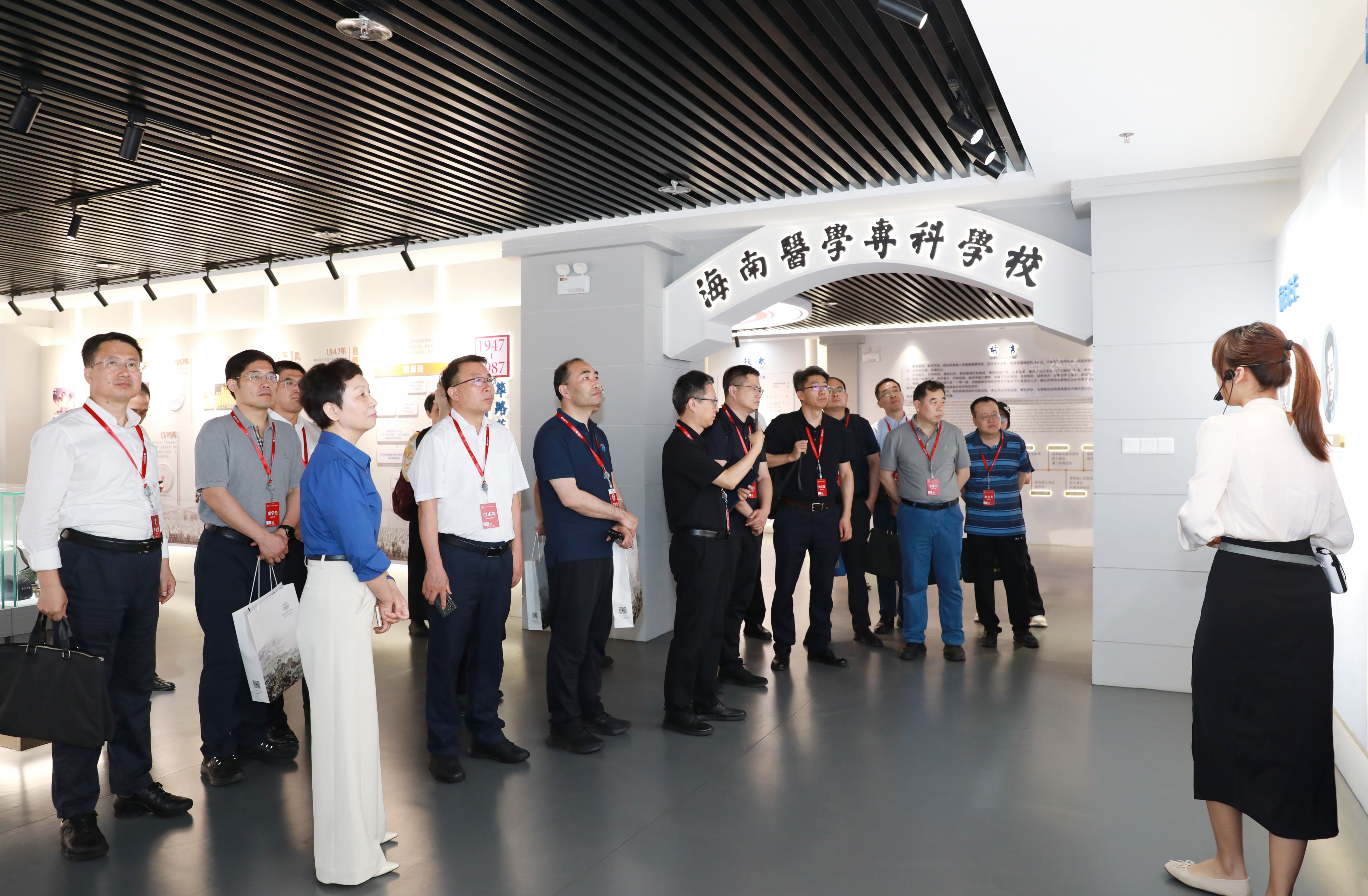 会前,张彩虹、黄斌文陪同调研团一行实地参观了海南省医学科学院和校史馆,实地考察我校在科研平台建设、高层次人才引育及科研等方面取得的突破性进展,以及学校的发展历程、办学特色和近年来的改革发展历程。