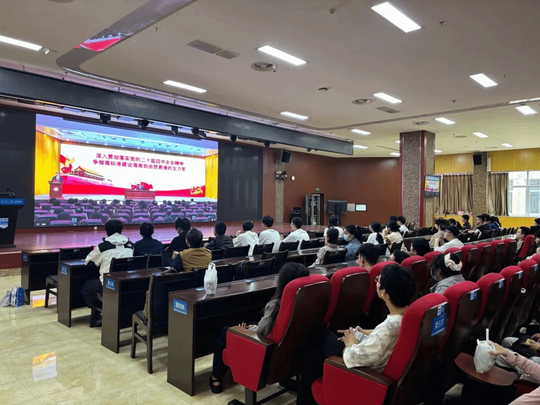 11月15日,省委副书记、省长刘小明在我校图书馆立德厅以“深入贯彻落实党的二十届四中全会精神,争做高标准建设海南自由贸易港的生力军”为题,为全校师生宣讲党的二十届四中全会精神并讲授思政课。