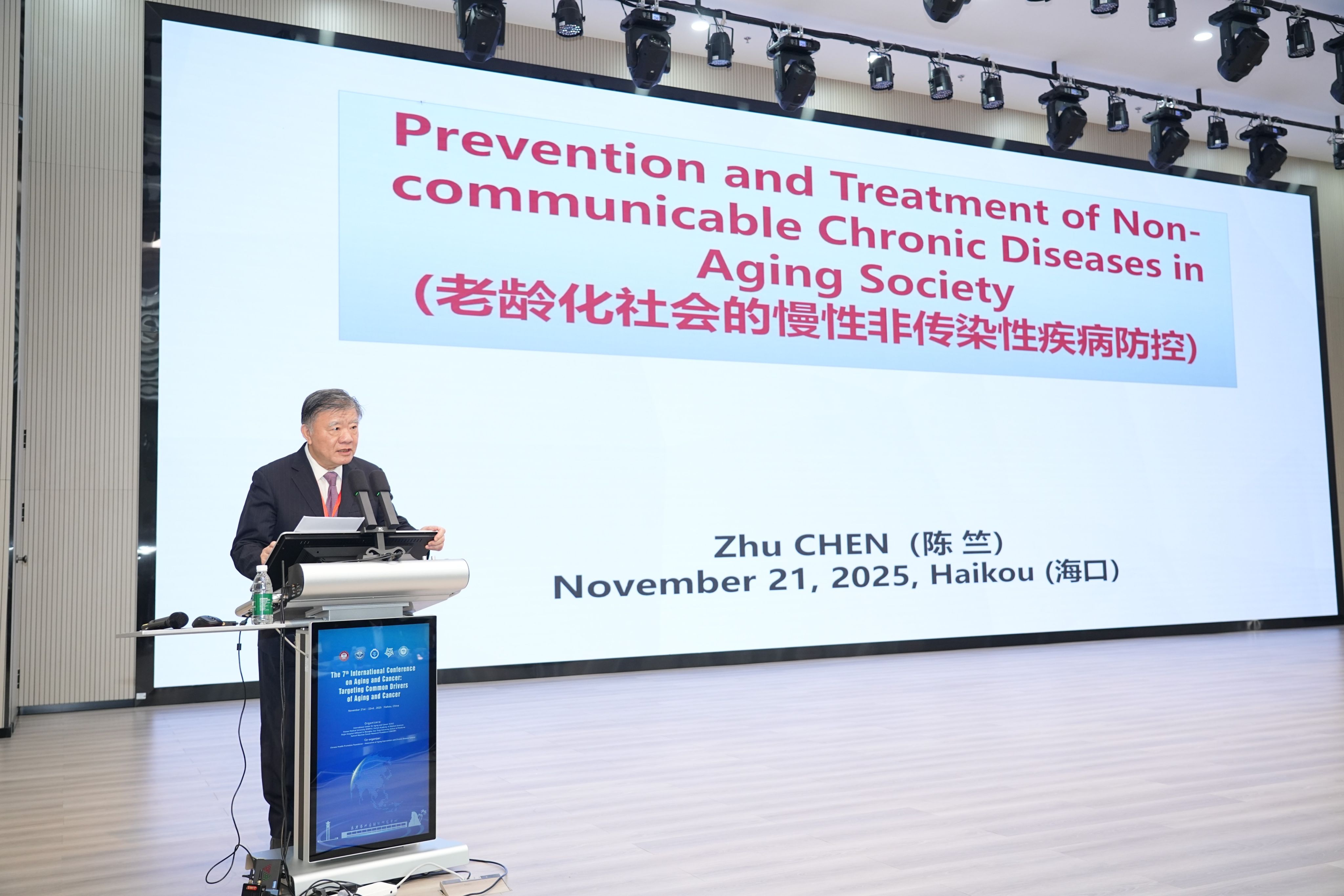 陈竺以《老龄化社会的慢性非传染性疾病防控》为题作主旨报告。他系统总结了中国在推进医改与实施“健康中国2030”战略过程中取得的显著成效,包括基本医保覆盖率超过95%、人均预期寿命提升至79岁,以及慢性病管理体系的不断完善。他指出,在人口快速老龄化的背景下,心脑血管疾病、癌症、糖尿病和慢性呼吸系统疾病等四大慢性非传染性疾病的防控形势依然严峻。我国正通过加强基础与临床研究、推动早筛早诊、完善分级诊疗、倡导健康生活方式等综合策略,力争在2030年前将四大慢病导致的过早死亡率较2015年水平降低30%,实现“健康中国2030”目标。