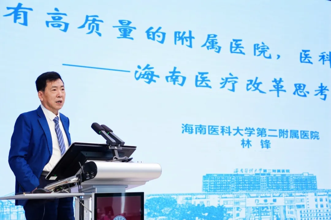 在专题报告环节,中南大学副校长、中南大学湘雅二医院院长吕奔教授系统分享了湘雅二医院发展经验与改革思考。他强调医院应以“用增量促改革、以发展解矛盾”为思路,通过系列体制机制创新实现降本增效,并搭建平台、实施灵活多元的引才用才政策,构建覆盖科研至产业的全链条成果转化体系,激发内生动力与发展活力。他指出,医院高质量发展需要坚守公益性定位,强化运营思维与系统治理,鼓励海医附属医院在自贸港背景下破解瓶颈,走稳特色发展之路。