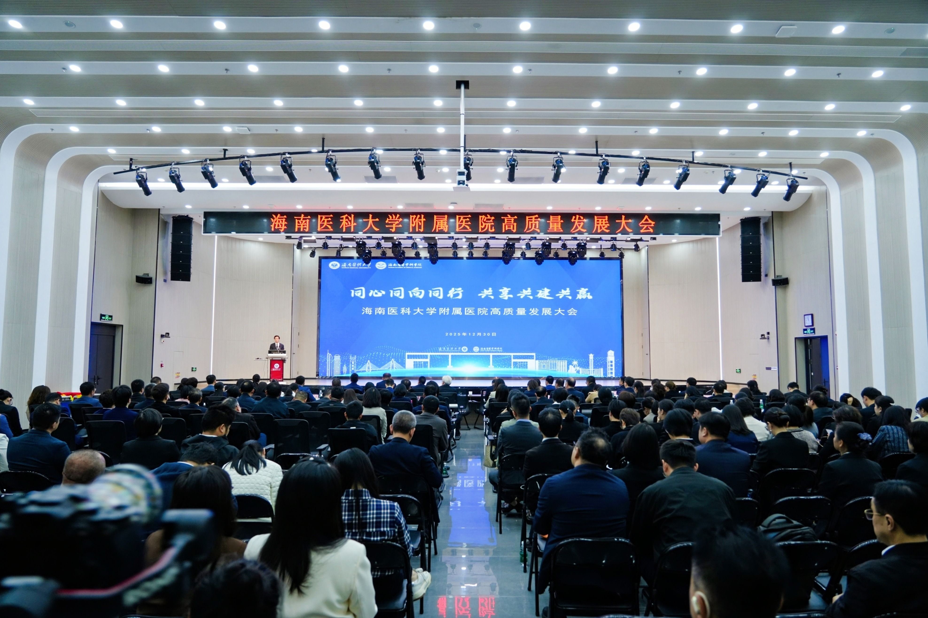 12月30日上午,海南医科大学附属医院高质量发展大会在立言厅召开。海南省人民政府教育总督学李渝凤、海南省卫生健康委员会副主任李娟、中南大学副校长吕奔、上海益中亘泰股份有限公司执行副总裁宋天骏以及学校全体在校领导出席会议。学校全体中层干部、各附属医院领导班子成员、相关科室负责人、医护员工代表与教师代表等参加会议。会议先后由副校长贾彬、曾敏主持。