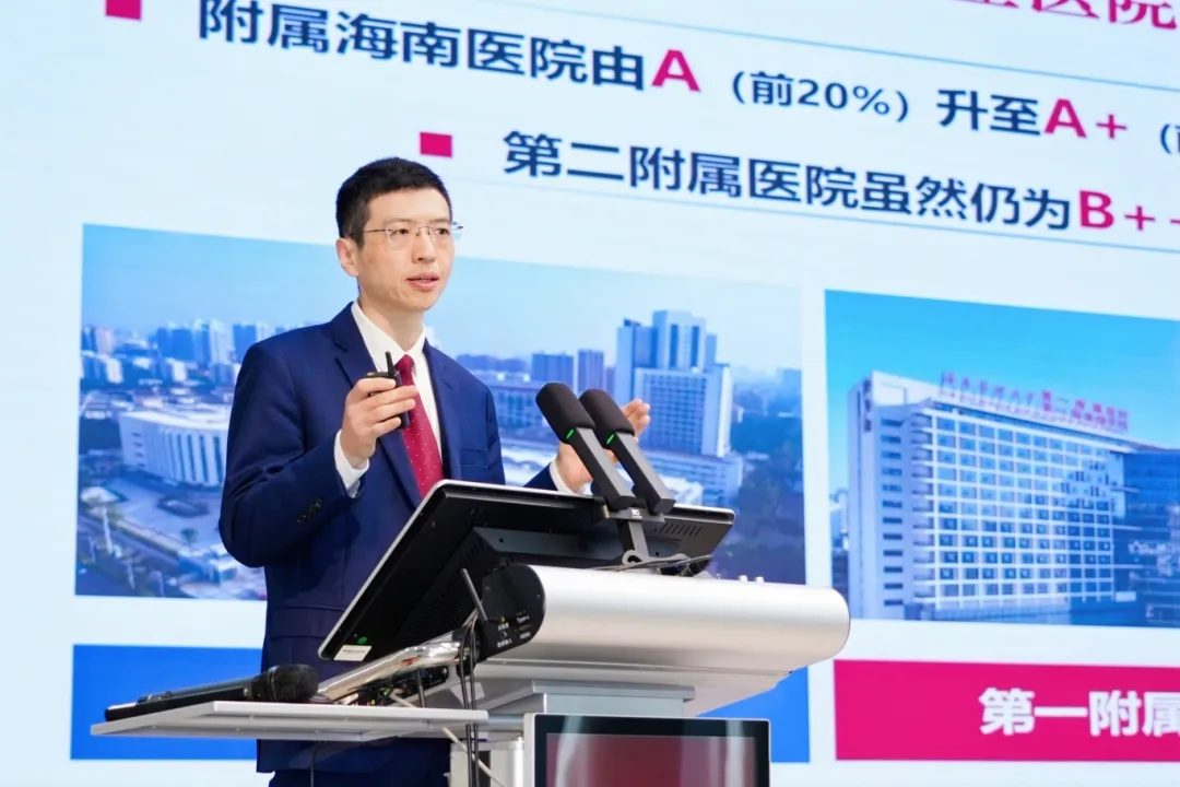 最后,陈国强校长做总结讲话。他指出,校本部改革已取得阶段性成效,结果来之不易,务必倍加珍惜。当前各附属医院的发展短板已成为制约学校整体提升和海南省实现“大病不出岛”目标的关键瓶颈,附属医院的改革仍需攻坚克难。他表示,将此次大会安排在2025年岁末,具有承前启后的深刻用意。他强调,为了海南人民的健康与自贸港建设大局,学校必须强化问题意识,突出重点、破解难点,坚持系统思维,发扬“刀刃向内”的自我革命精神,坚定不移、全力推动附属医院改革。