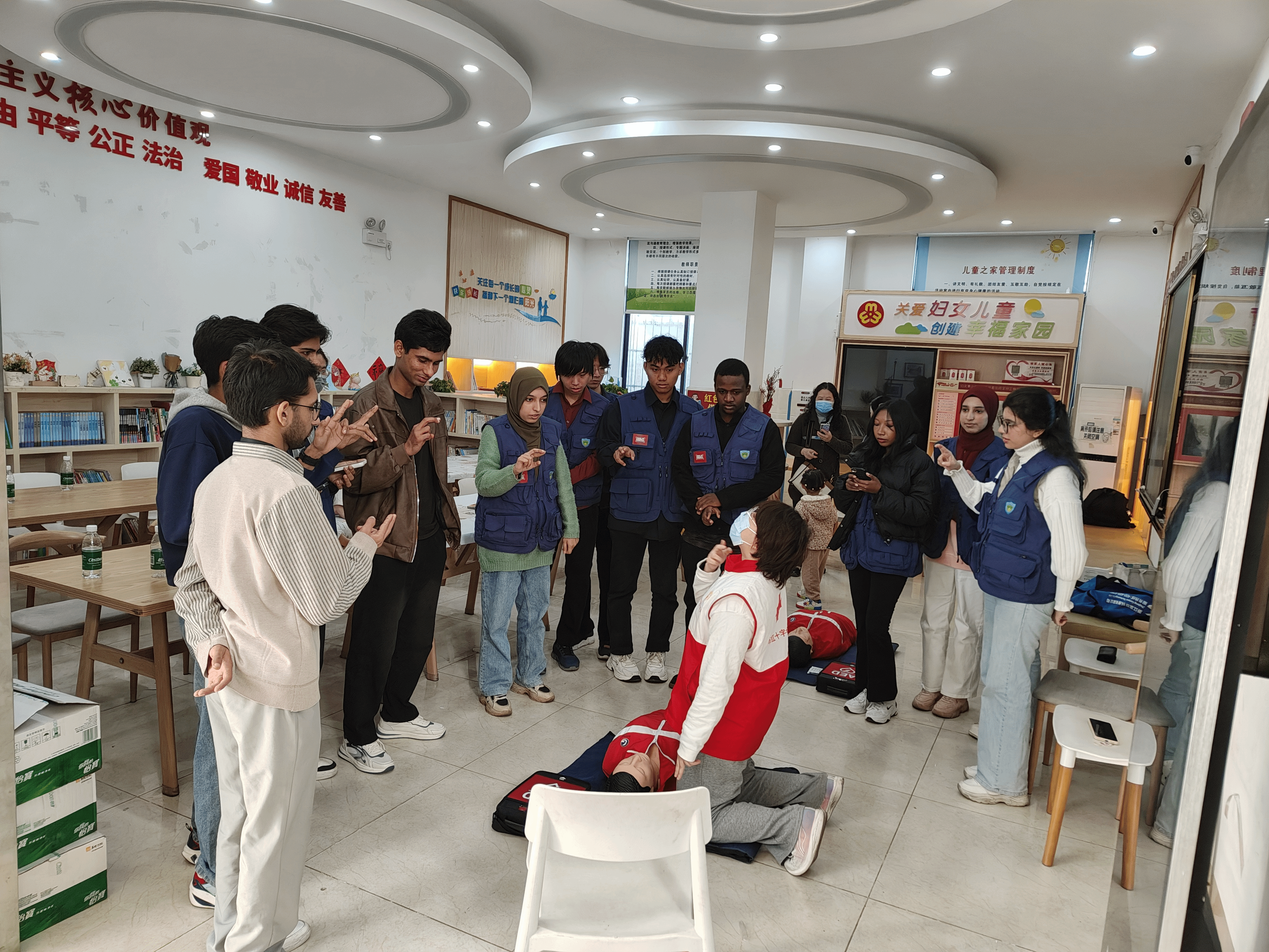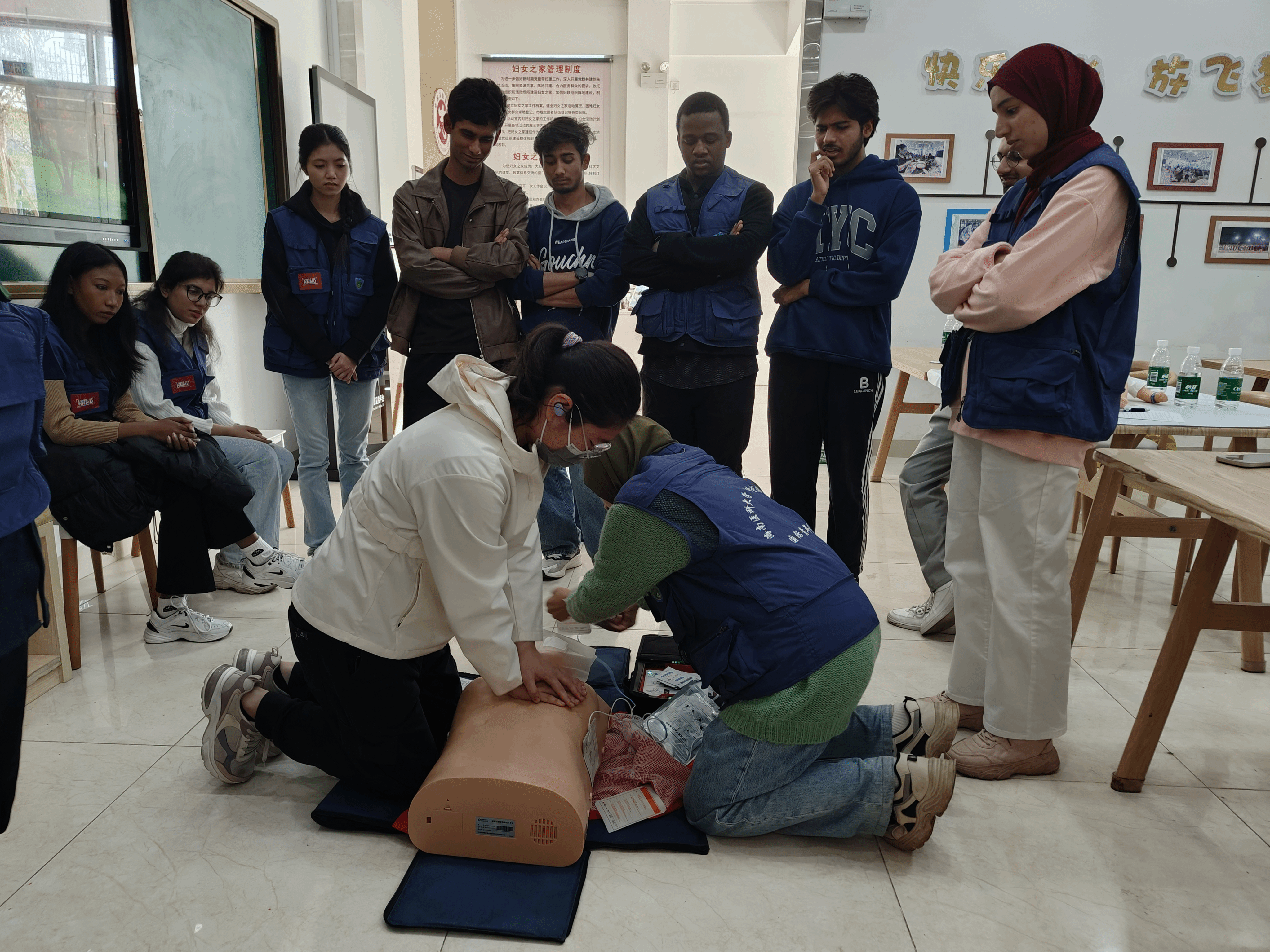 1月14日上午,首期国际学生心肺复苏(CPR+AED)急救培训考证班在苍西村委会便民服务中心正式开班。此次活动聚焦提升国际学生在紧急情况下的应对能力,推动其从“校园学习者”向“社区建设者”角色转变,标志着来华留学生深度融入海南社会服务体系、参与公共安全建设迈出重要一步。